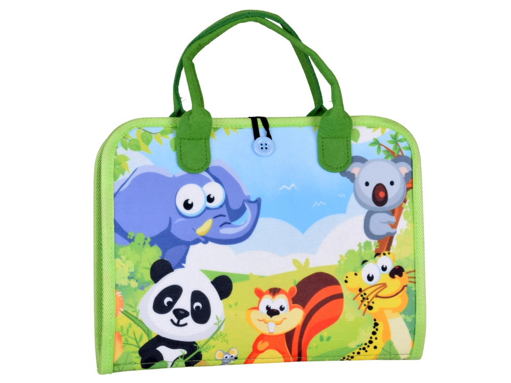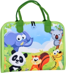 Minkšta konstrukcija, rankenėlės ir užsegimas užtrauktuku ar gumyte su saga. Tinka namuose, automobilyje ir kelionėse. Puslapius galima išimti ir naudoti atskirai.