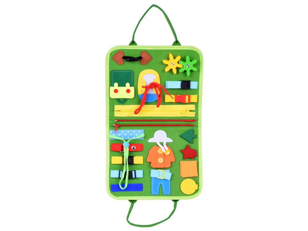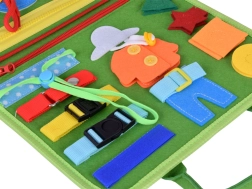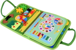 Ši kūrybinė knygelė lavina vaikų įgūdžius per prasmingą žaidimą. Viduje rasite išimamus minkštus puslapius su užtrauktukais, sagtelėmis, sagomis, raišteliais, formomis su lipdukais ir mokomaisiais elementais, tokiais kaip laikrodis su pasukamomis rodyklėmis, savaitės dienos, orai ir kalendorius. Vaikai lavina akių–rankų koordinaciją ir loginį mąstymą.