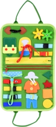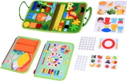 Varstymas, užtrauktukai, sagtelės, sagos, formos su lipdukais, virtuvė, kambarys, darželis ir kalendorius – plati veiklų įvairovė motorikai ir logikai lavinti.