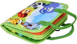 Turinyje yra scenelės rengimuisi (užsegimas, atsegimas, rišimas), vaikų kambarys su spinta drabužėliams, virtuvė su maistu, darželis su vaisių ir daržovių rūšiavimu ant lipdukų, ir puslapis pirštukų mankštai. Minkštos medžiagos ir saugūs elementai užtikrina tylų ir ramų užsiėmimą namuose ir kelionėse.