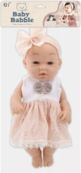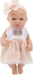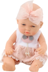Ši kūdikio lėlė žavi elegantiška rožine suknele su nėriniuotu krašteliu ir derančiu lankeliu su didele kaspinu. Švelnūs veido bruožai ir malonios medžiagos kuria tikro kūdikėlio įspūdį, kurį vaikai greitai pamils.
