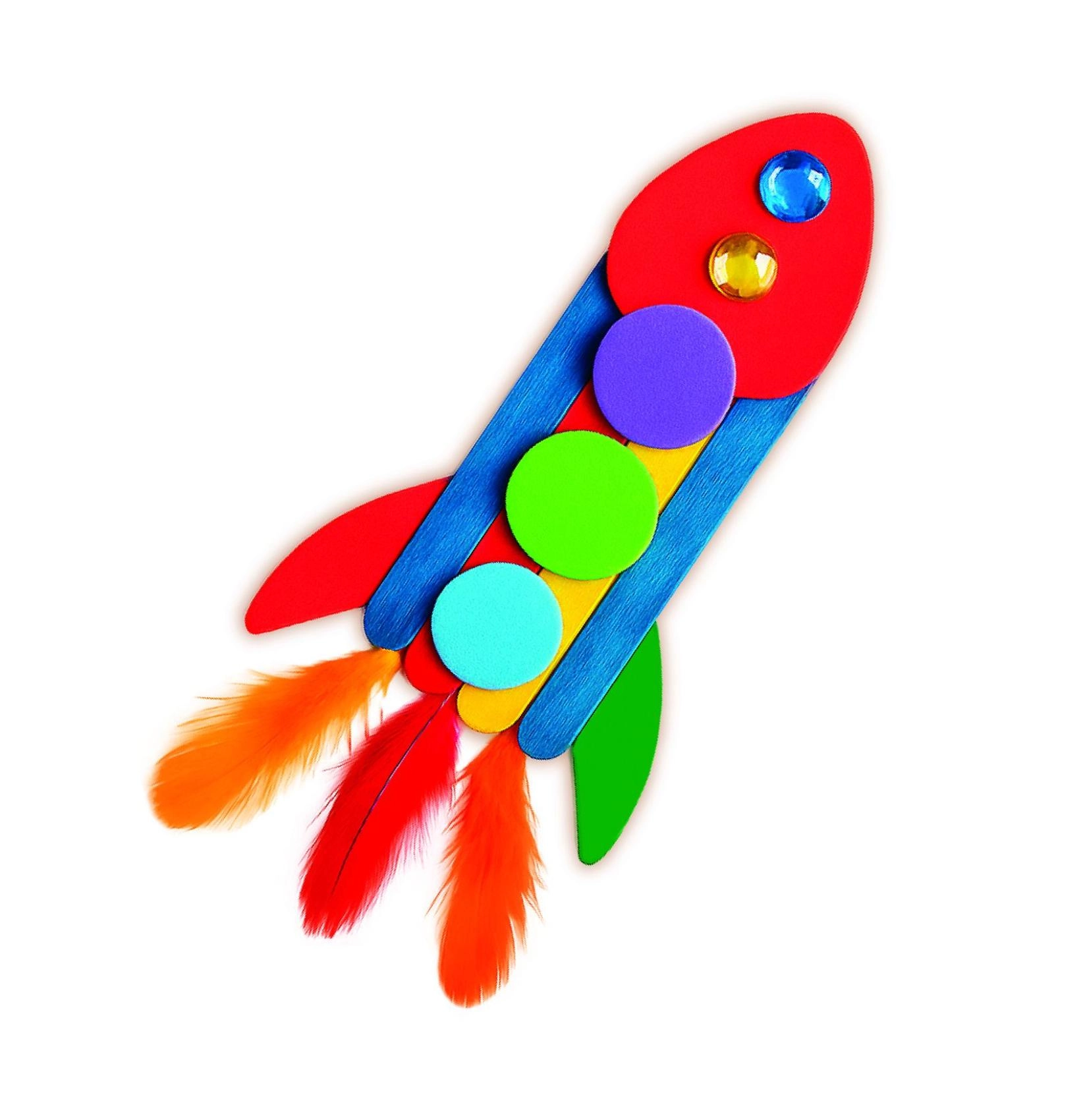 Vaikai gali susikurti savo raketą ir kitus teminius kūrinius. Formų ir puošmenų deriniai skatina kūrybišką žaidimą ir kūrimą žingsnis po žingsnio.