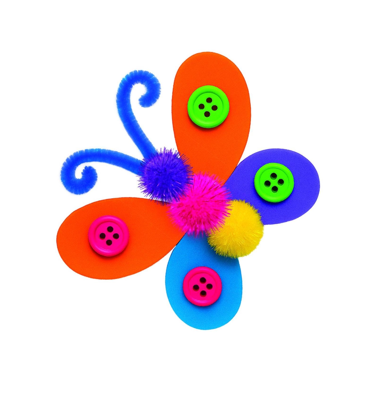 Derinkite putplasčio sparnus, sagas, pomponus ir pūkuotas vielutes, kad sukurtumėte unikalius drugelius. Puikiai lavina smulkiąją motoriką ir spalvų derinimą.