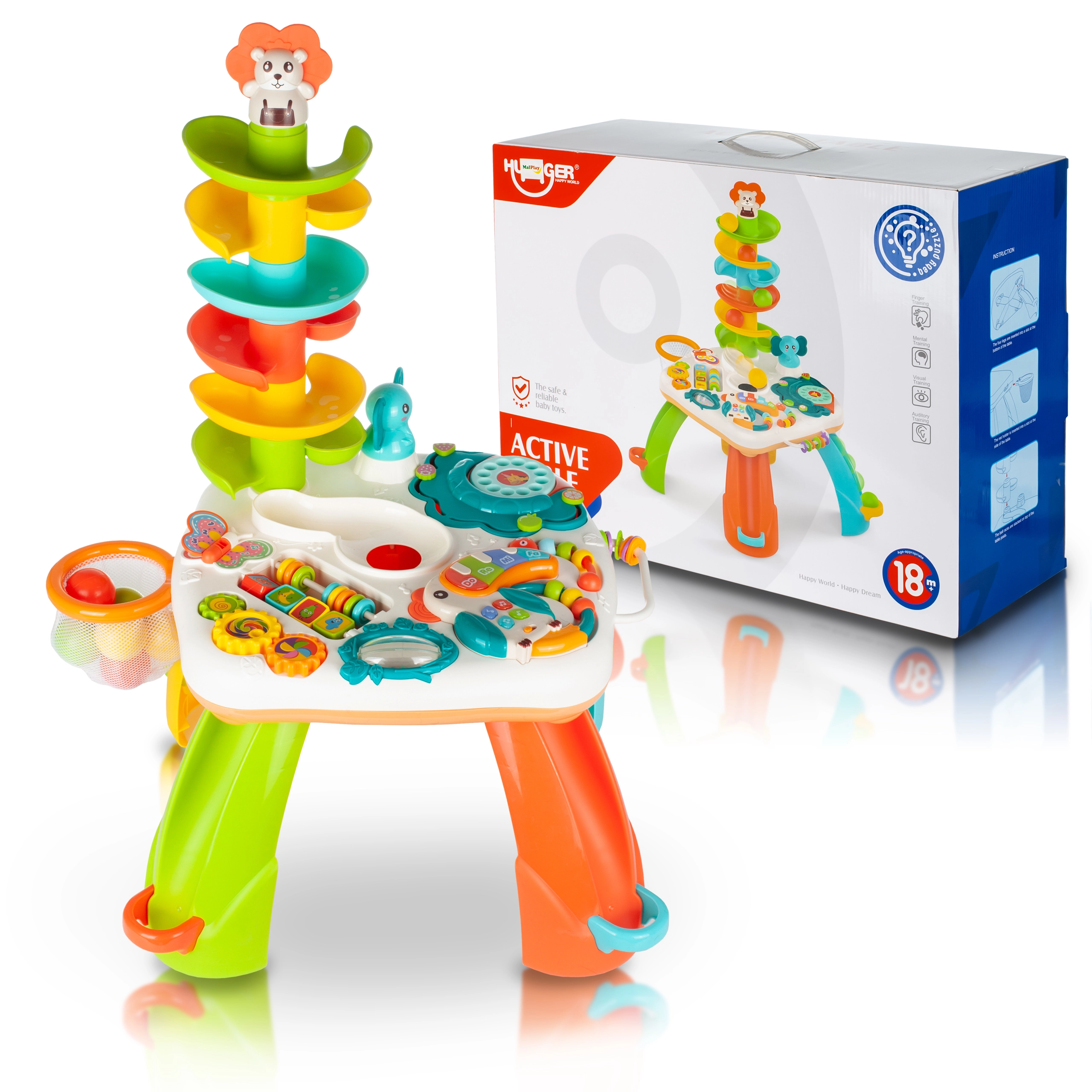 Interaktyvus staliukas su čiuožykla yra idealus pasirinkimas pirmajam pasaulio pažinimui. Vaikus sudomina šviesos ir garsai, kurie skatina jutiminę raidą ir padaro žaidimą dar malonesnį. Stabili konstrukcija ir praktiškas aukštis sukurti atsižvelgiant į vaikų saugumą ir ergonomiką.