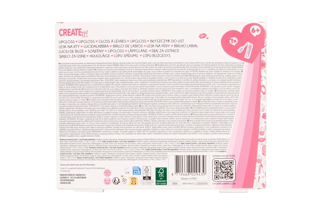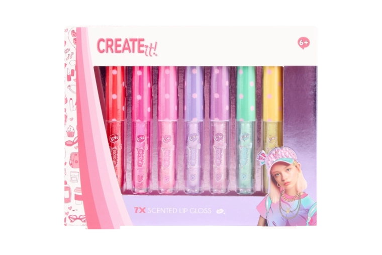 Atraskite žaismingą 7 kvapių lūpų blizgių CREATE IT! rinkinį, kuris suteiks jūsų lūpoms spindesio, subtilių blizgučių ir malonų aromatą. Kiekvienas tūbelės blizgis turi skirtingą atspalvį ir kvapą, tad lengvai išsirinksite spalvą kiekvienai nuotaikai. Puikiai tinka kaip dovana arba dalintis su draugėmis.