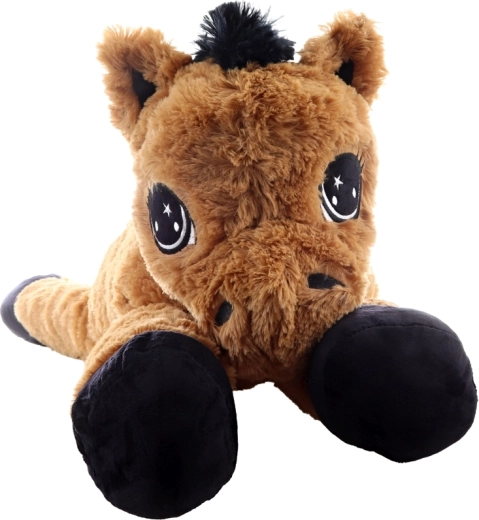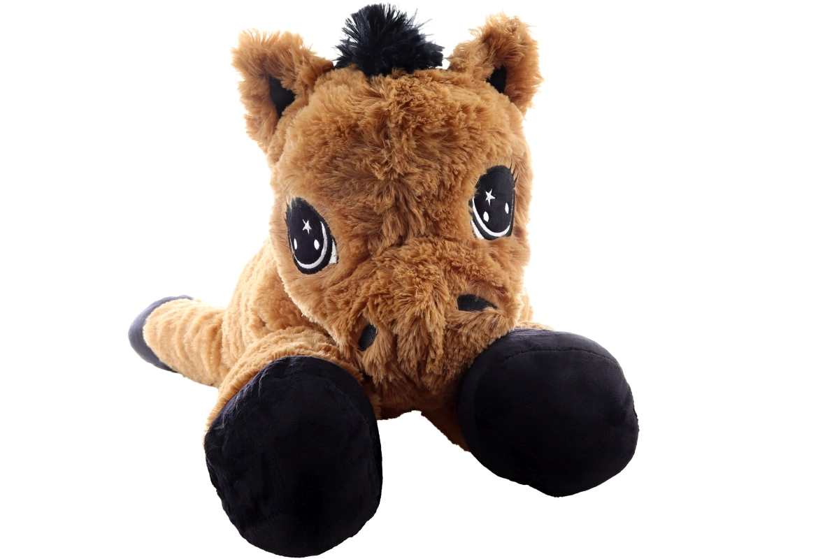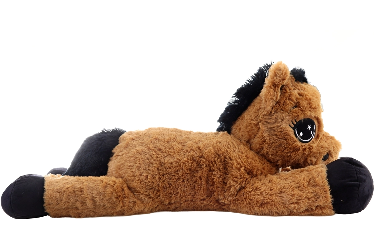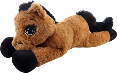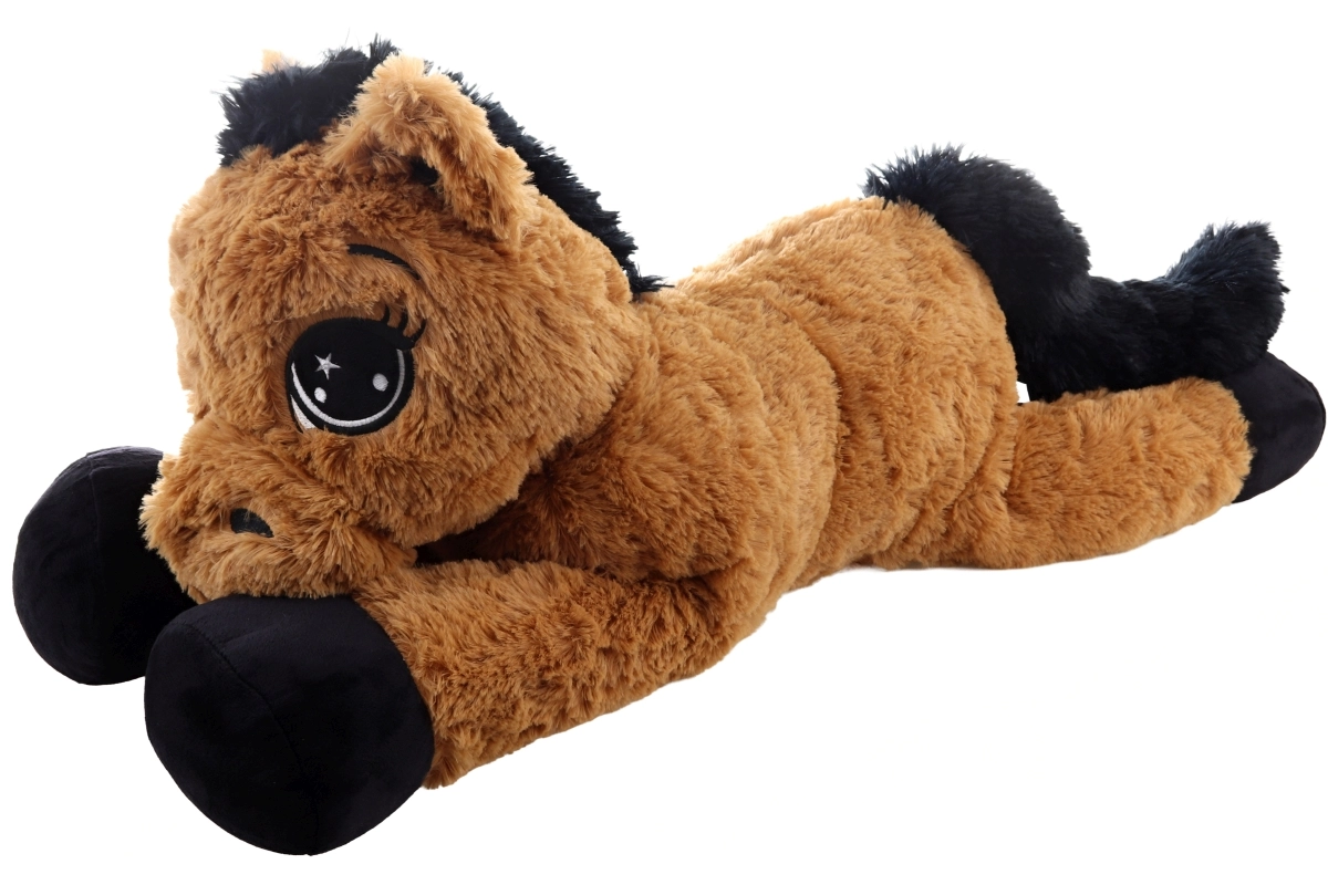 Šis rudas gulintis pliušinis arklys pradžiugins nuo pirmo prisilietimo. Jis turi dideles siuvinėtas akis, minkštą karčius ir uodegą, yra ir mielas draugas, ir patogi atrama skaitant ar žiūrint pasakas. Išmatavimai 80 × 32 × 25 cm užtikrina pakankamai vietos apkabinimams ir poilsiui.