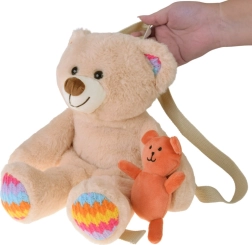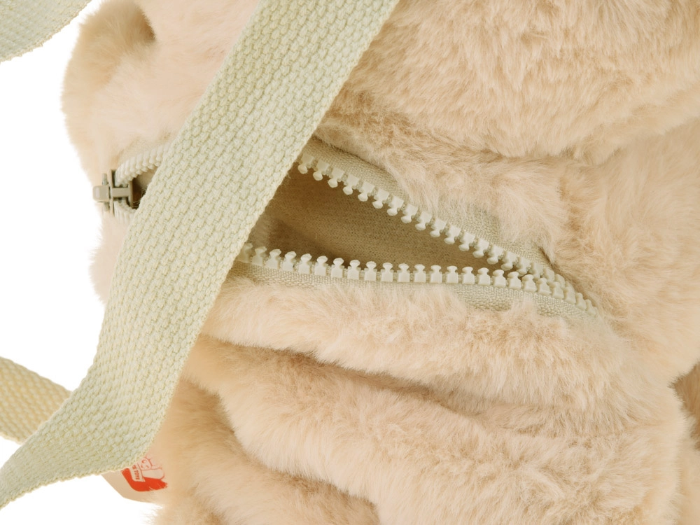 Ši švelni smėlio spalvos meškučio formos kuprinė sujungia žaislą ir praktišką krepšį viename. Spalvotos letenėlių ir ausyčių detalės, siuvinėta šypsena ir jaukus pūkuotas paviršius skatina vaiko vaizduotę ir suteikia patogumo nešiojant. Paslėpta užtraukiama kišenė talpina smulkius lobius, užkandį ar nosinaites.