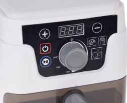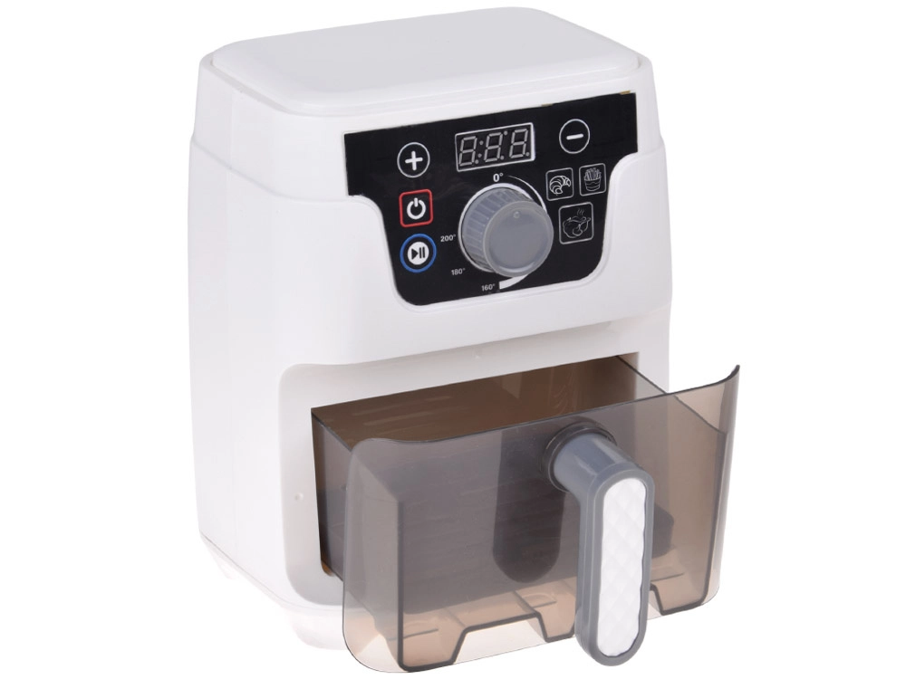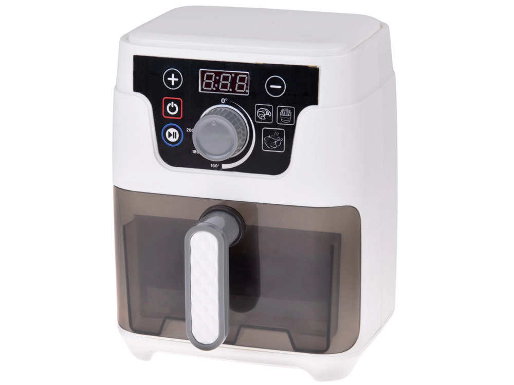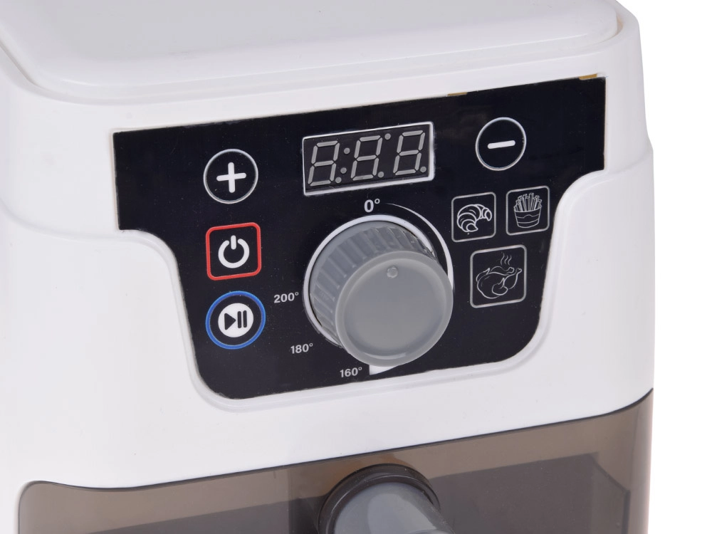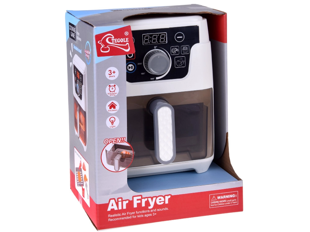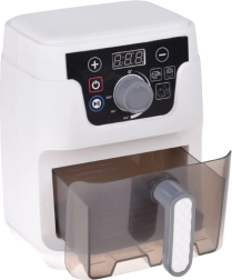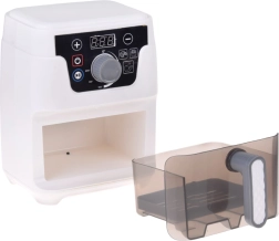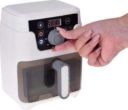 Mažoji virtuvės žvaigždė darbe! Vaikiška AIR FRYER fritiūrinė realistiško dizaino su apšviestu krepšeliu, kepimo garsais ir spalvotu ekranu žaismingai supažindina vaikus su gaminimo principais. Skaitmeninis valdymas leidžia nustatyti laiką ir temperatūrą bei įjungti automatines programas bandelėms, bulvytėms ir vištienai.