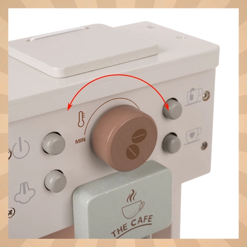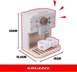 Suteikite vaikams džiaugsmo kuriant savo kavinę. Medinis kavos aparatas KRUZZEL – apgalvotas edukacinis žaislas, lavinantis fantaziją, akių–rankų koordinaciją ir savarankiškumą. Dėl santūrios spalvinės gamos tinka tiek moderniems, tiek klasikiniams vaikų kambariams.
