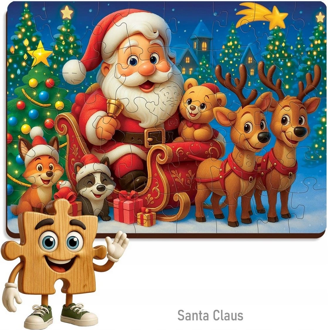 Padovanokite vaikams kūrybiško žaidimo džiaugsmą su medine dėlione su KALĖDŲ SENELIU. Kokybiška medžiaga ir preciziškas apdirbimas užtikrina saugumą ir ilgaamžiškumą. Dėlionė idealiai tinka bendroms šeimos akimirkoms ir įgūdžių lavinimui.
