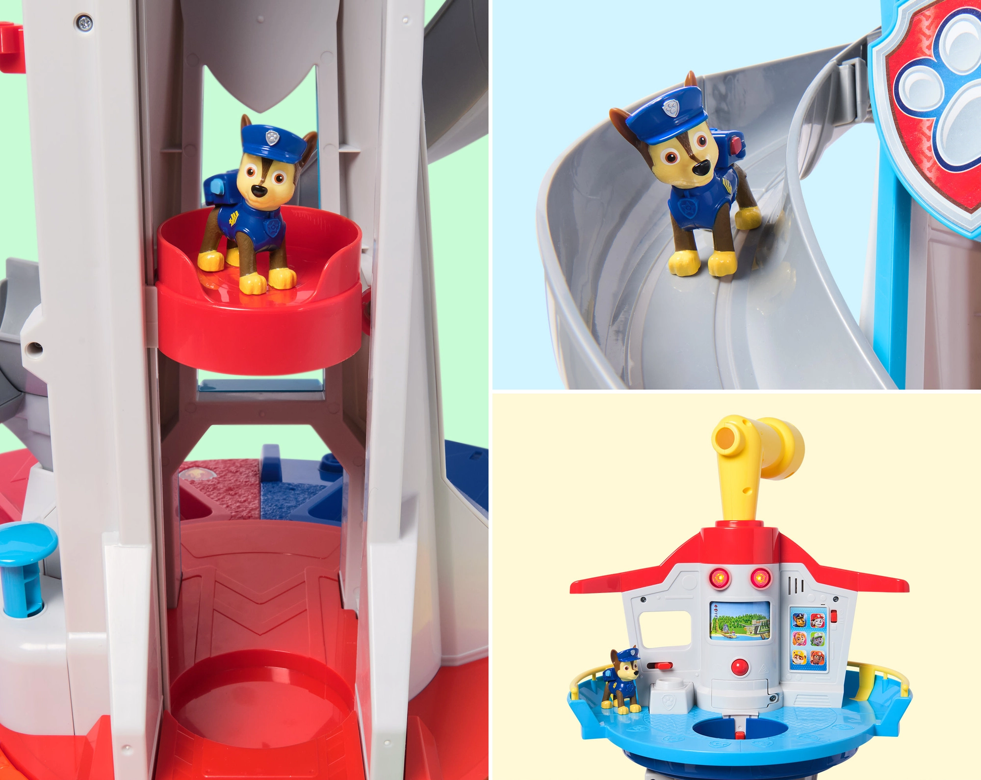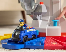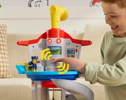 Ikoninė PAW PATROL bazė suteikia vaikams begalines žaidimo galimybes. Pasirinkus misiją valdymo skydelyje su mygtukais ir efektais, tereikia pakelti Čeisą liftu į viršų, apsižvalgyti besisukančiu periskopu ir pradėti didvyrišką gelbėjimo operaciją lekiant plačia čiuožykla tiesiai į besisukančią paleidimo rampą.