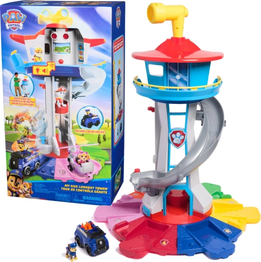 Patirkite veiksmo kupinas akimirkas kaip filme su daugiau nei 81 cm aukščio PAW PATROL bokštu My Size Lookout Tower. Vaikus sužavės šviesos ir garso efektai, liftas, besisukantis periskopas ir ilga čiuožykla į paleidėją. Rinkinyje yra Čeiso figūrėlė ir jo policijos automobilis – pasiruošę veiksmui iškart išpakavus.