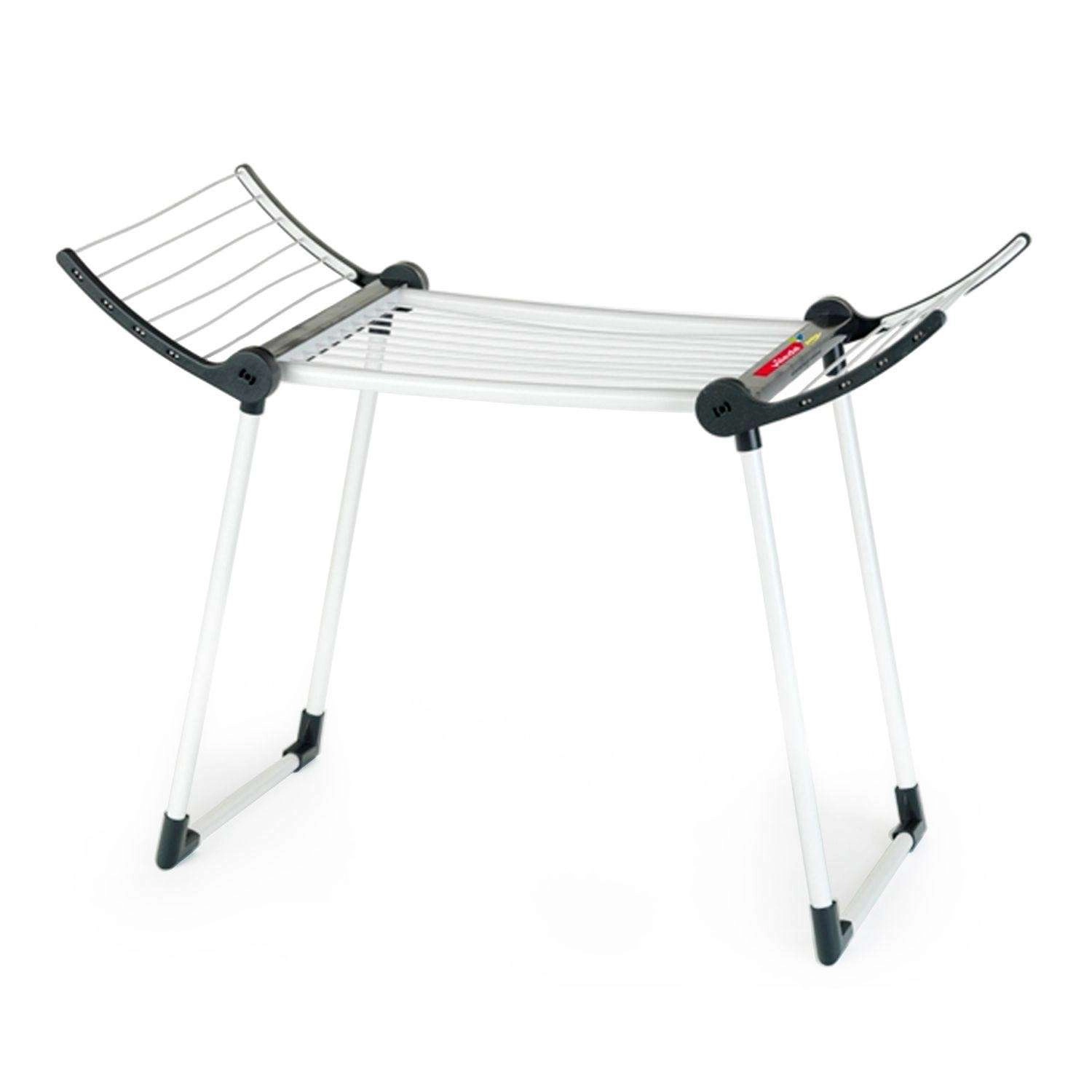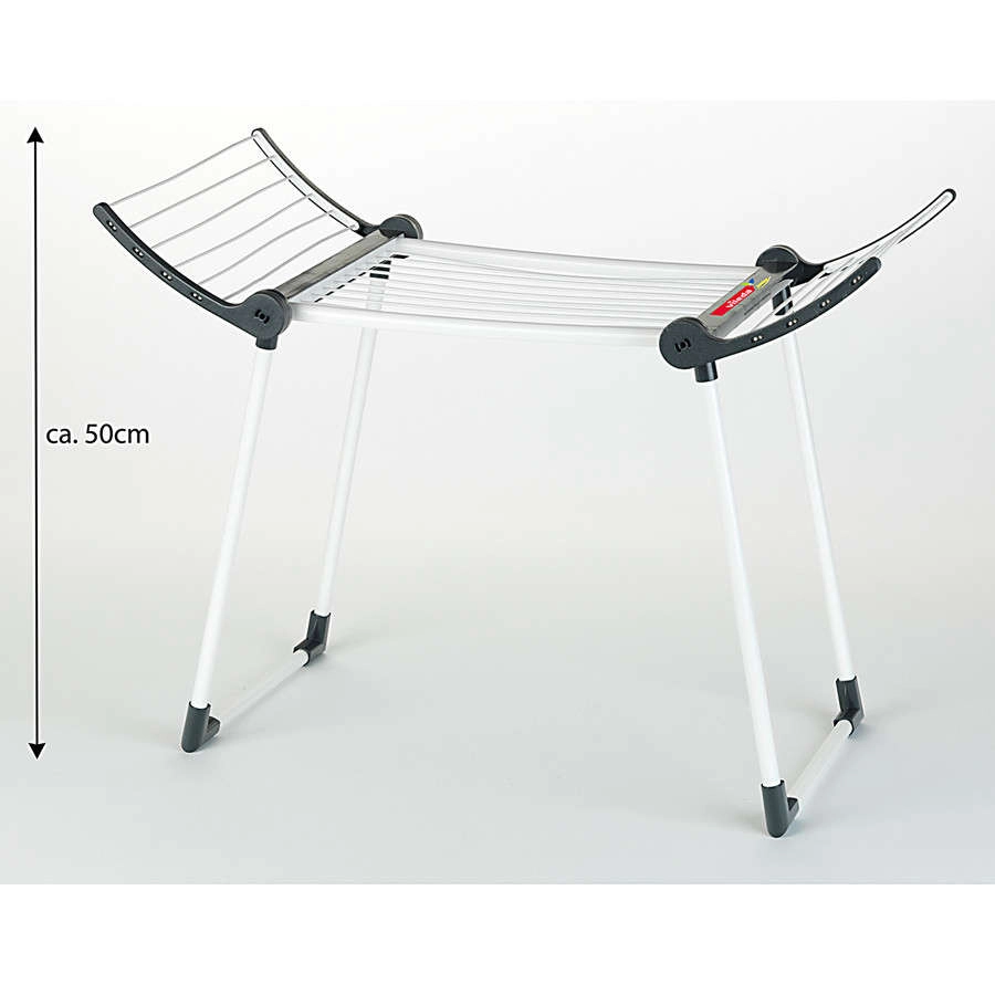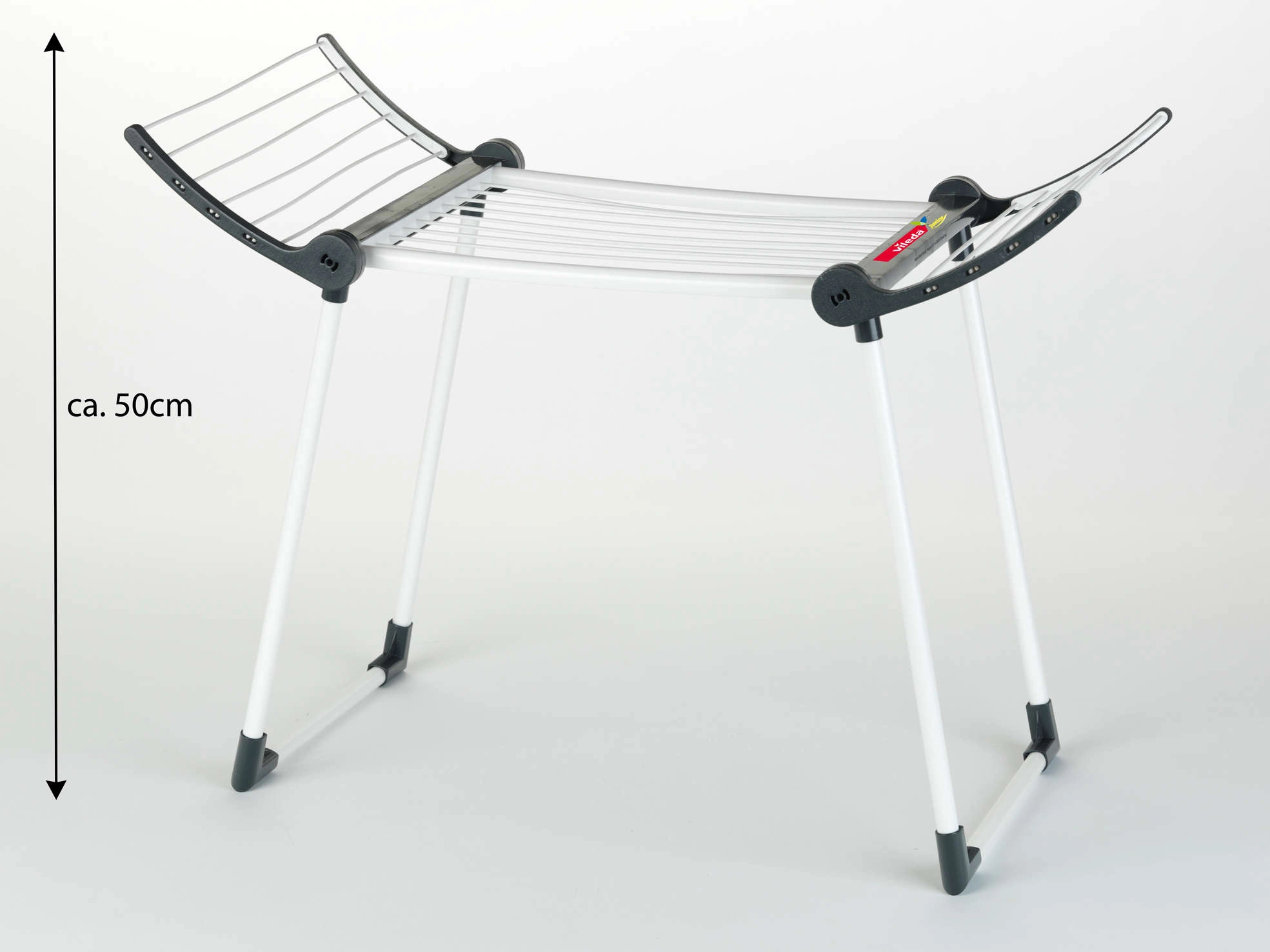 Konstrukcija tvirta ir stabili dėl dvigubų kojelių, džiovyklė baltos spalvos su juodais elementais ir turi du nulenkiamus šonus, kad būtų daugiau džiovinimo vietos. Po žaidimo ją lengvai sulankstysite iki kompaktiškų matmenų, todėl taupo vietą vaikų kambaryje.