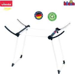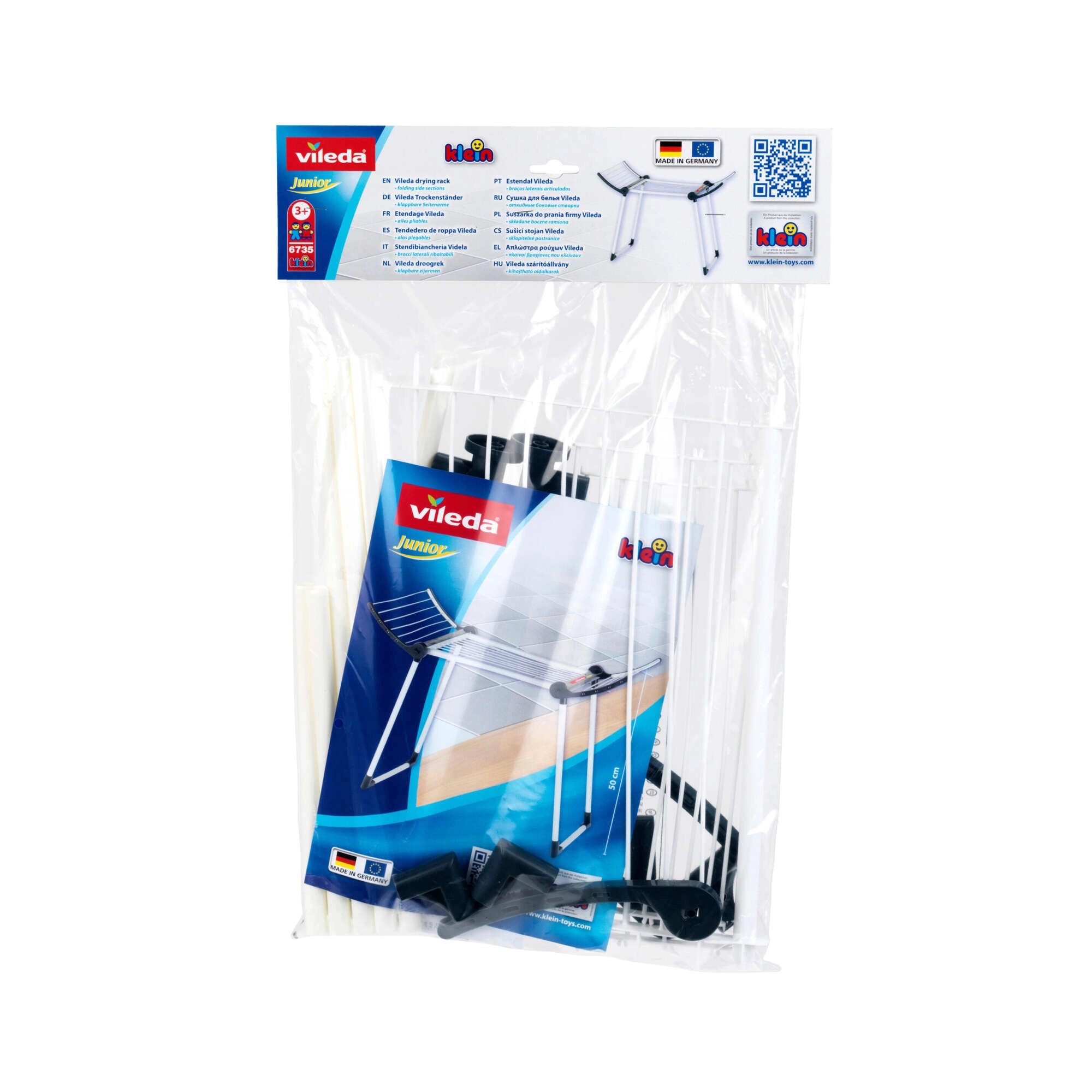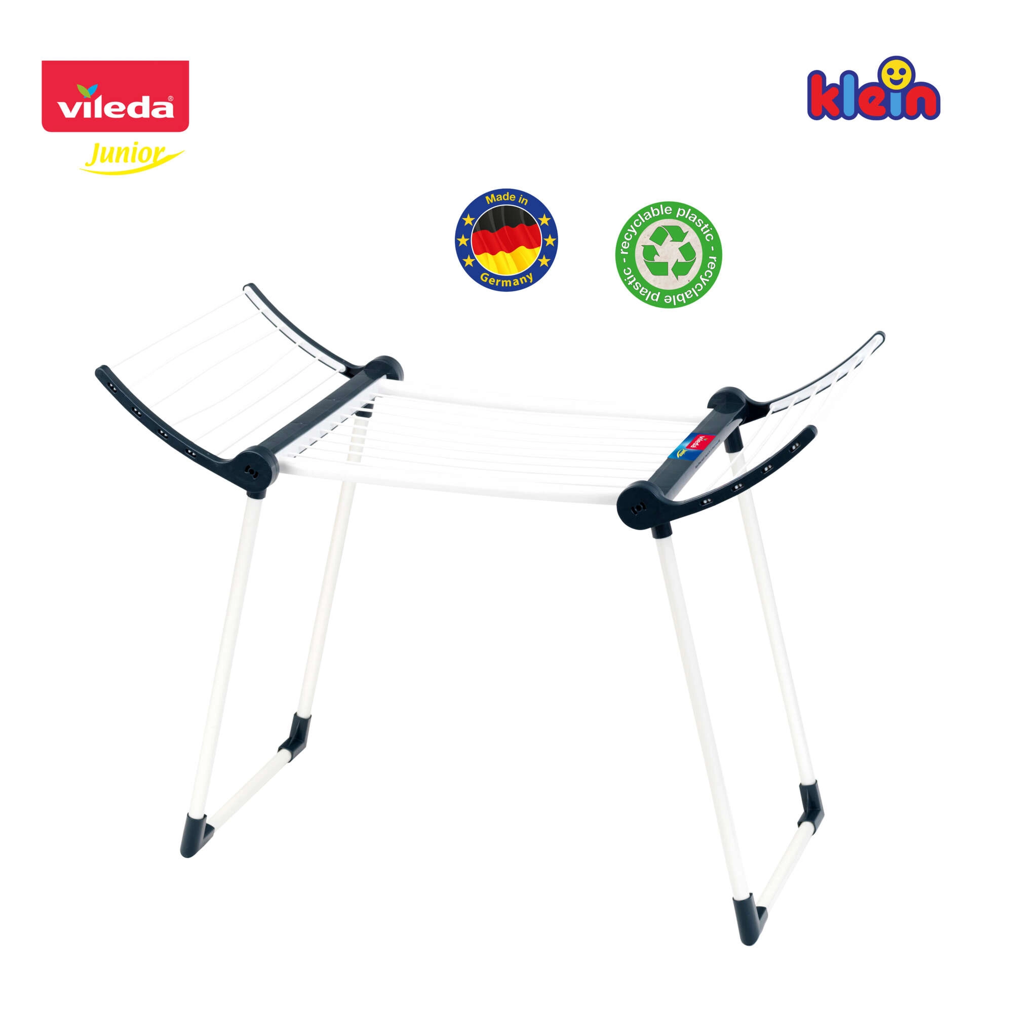 Realistiška vaikiška Vileda skalbinių džiovyklė iš KLEIN yra tikro džiovyklės modelio atitikmuo ir siūlo vaikams saugų bei smagų namų ruošos darbų imitavimą. Pagaminta su dėmesiu detalėms, turi stabilias dvigubas kojeles, du nulenkiamus šonus ir nedidelį svorį. Dėl galimybės sulankstyti iki mažesnių matmenų neužima vietos, kai nenaudojama.