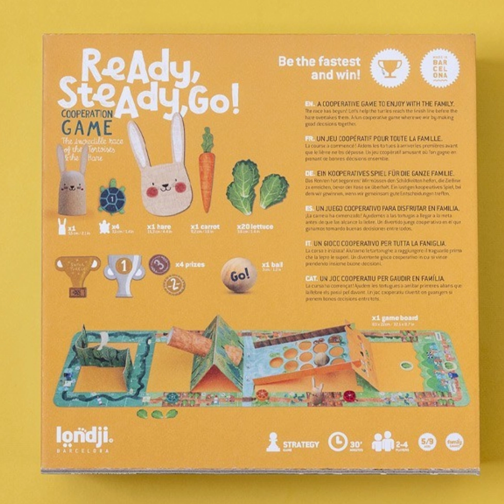 Leiskitės į žaismingą trasą, kur susitinka dvi strategijos: greitas kiškio sprintas ir ištvermingas vėžlio žingsnis. Žaidimas lavina susikaupimą, planavimą ir džiaugsmą leisti laiką kartu. Dėl originalių LONDJI iliustracijų ir kokybiško atlikimo tai yra puikus pasirinkimas šeimos vakarams.