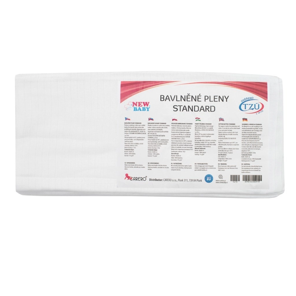 Praktiškos medvilninės sauskelnės NEW BABY dydžio 60 × 80 cm, pakuotėje 10 vienetų, idealiai tinka kasdienei kūdikio priežiūrai. Jos pagamintos iš 100 % medvilnės, kurios gramatura 115 g/m², turi 2 tvirtus kraštus ir 2 apsiūtus didesniam patvarumui. Patikrinta Tekstilės bandymų institute Brno. Nerekomenduojama džiovinti džiovyklėje.