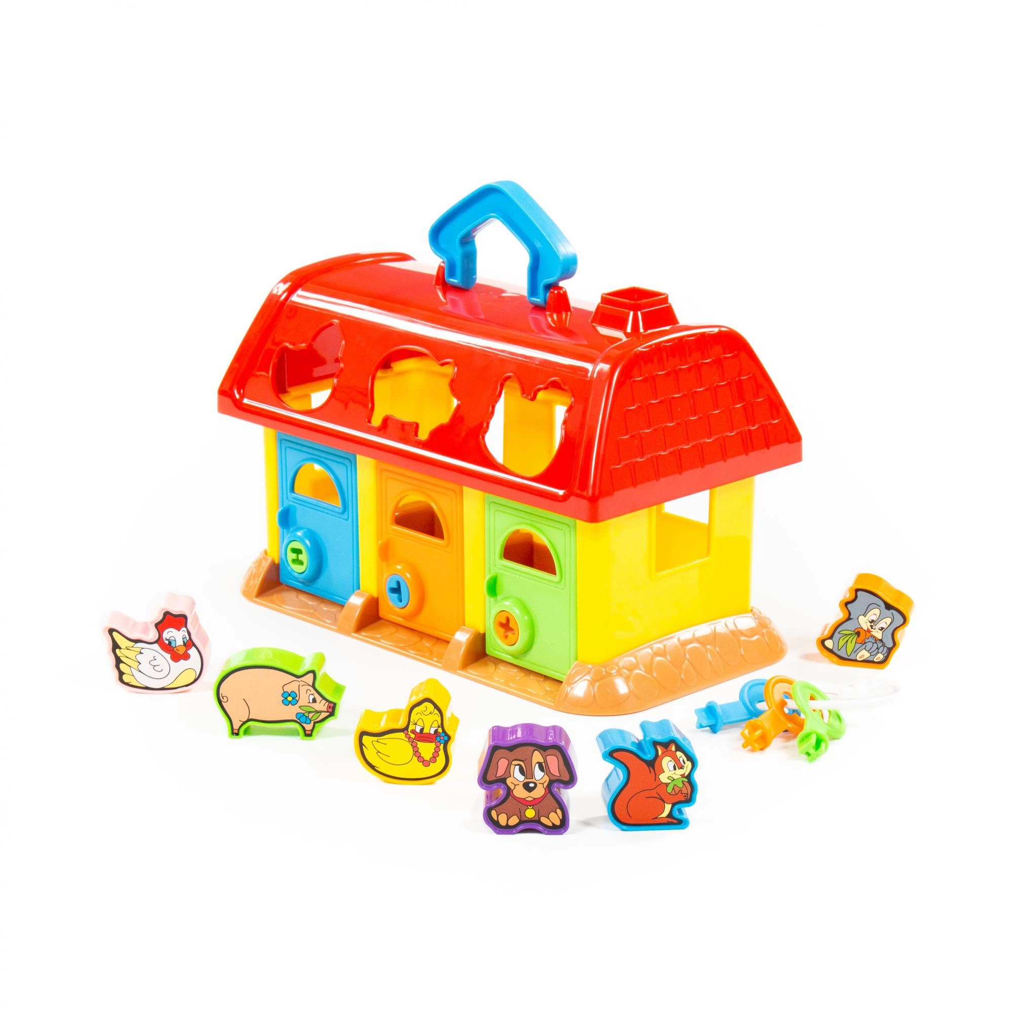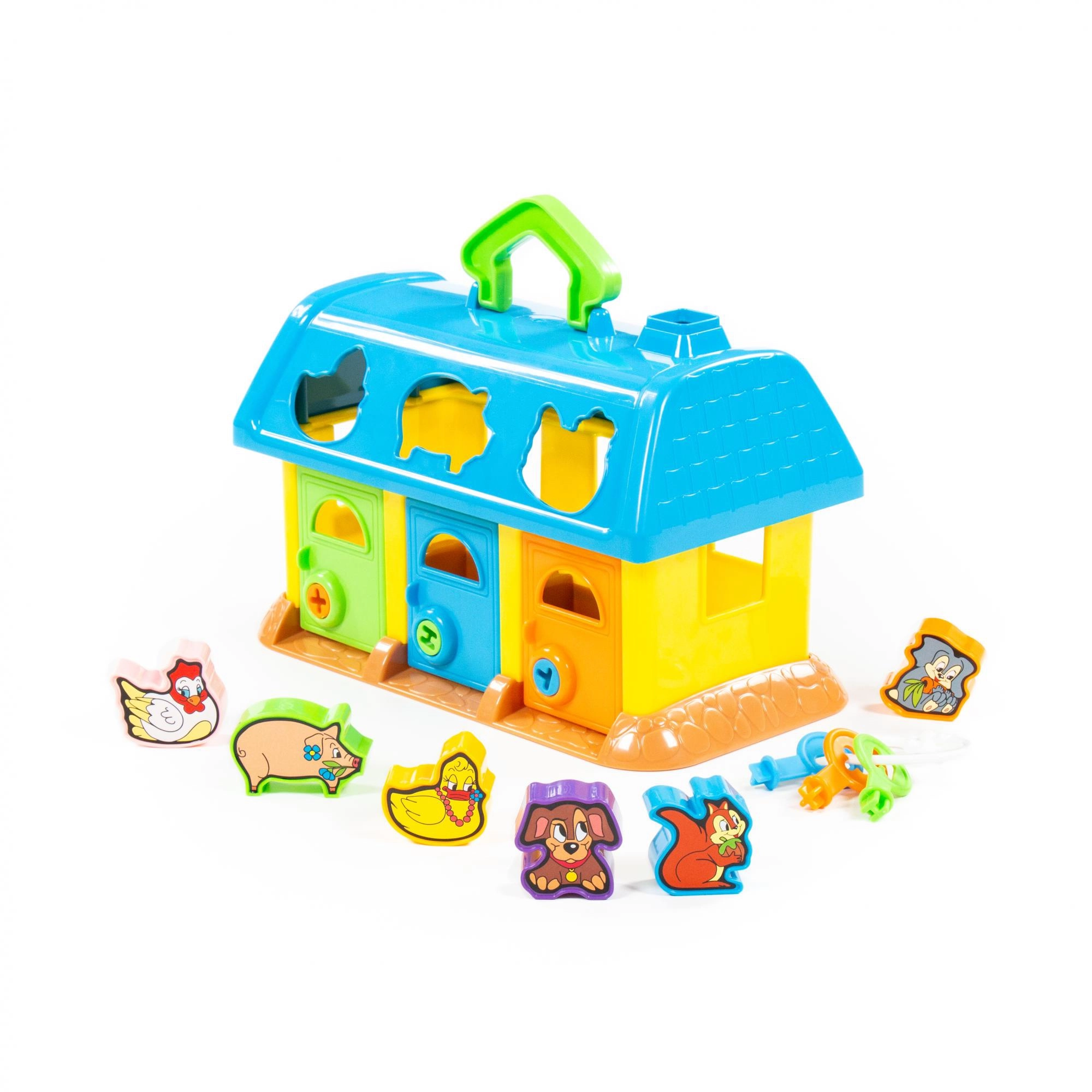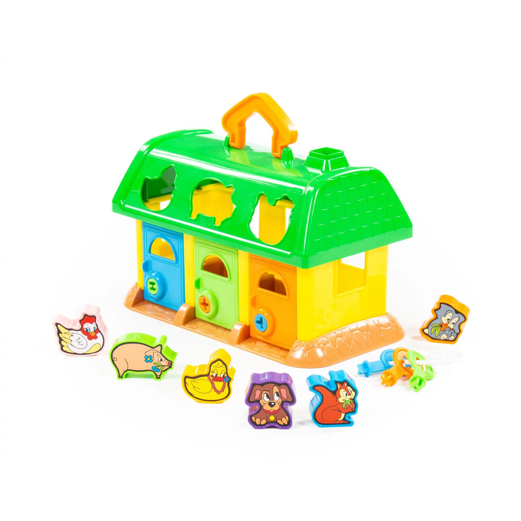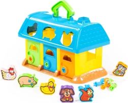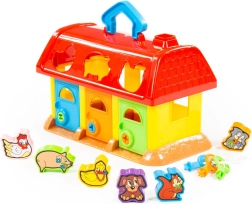 Šis spalvingas plastikinis namelis – puikus pasirinkimas pirmajam didaktiniam žaidimui. Vaikai dėlioja gyvūnų formas į atitinkamas angas stoge ir rakteliais atidaro dureles, kad vėl pasiimtų savo radinius. Žaislas natūraliai skatina rankos–akies koordinaciją, kantrybę ir erdvinį mąstymą.