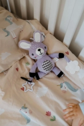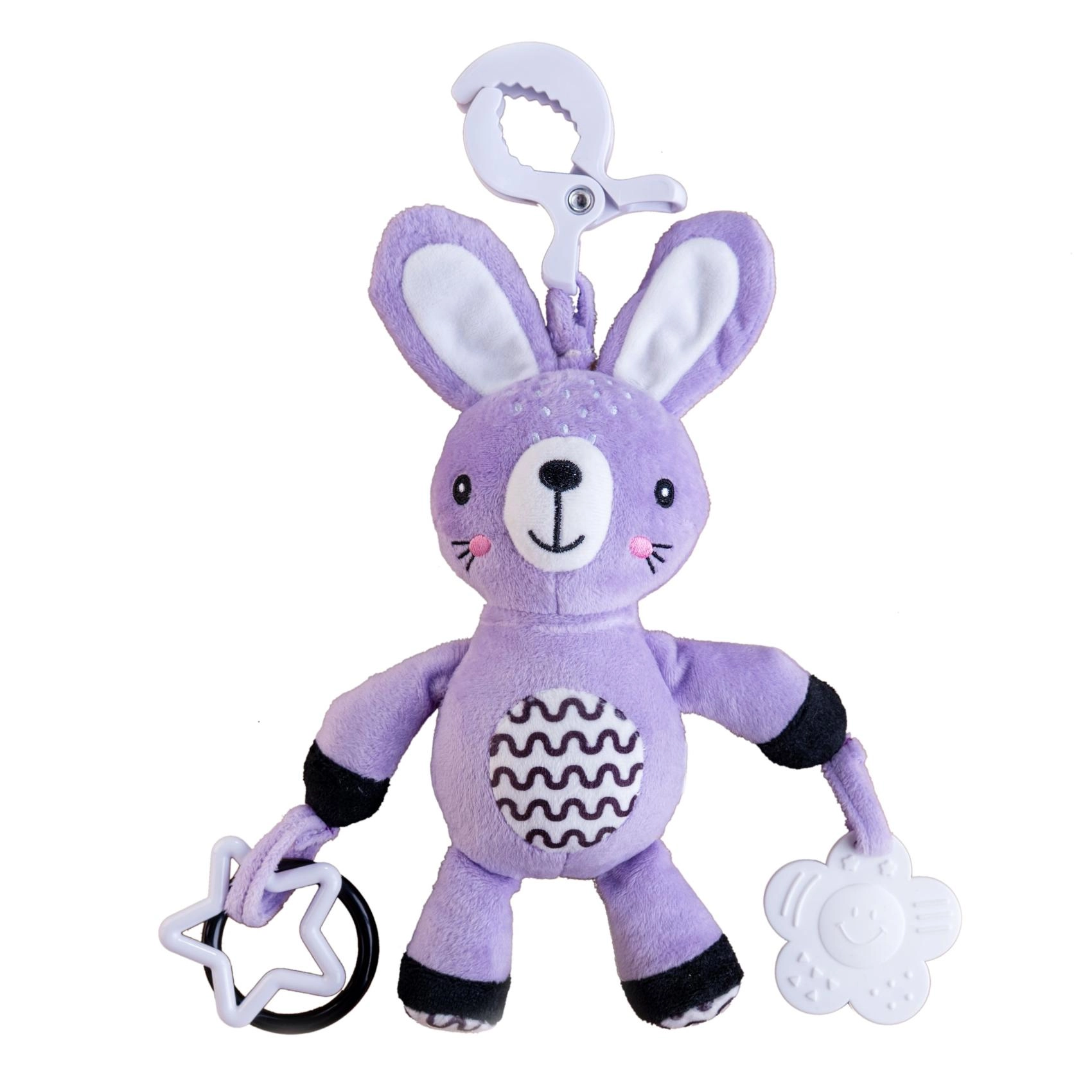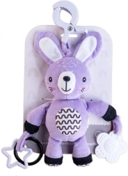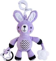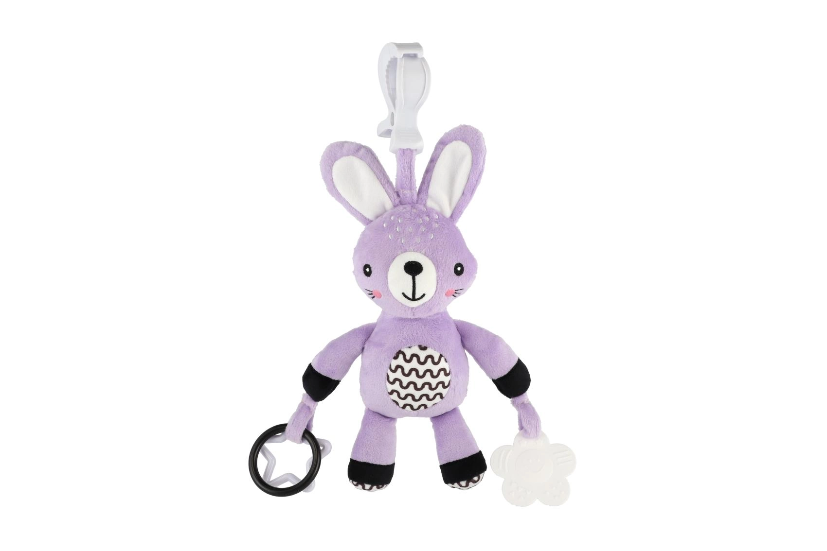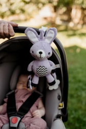 Šis švelnus kabinamas triušiukas taps pirmuoju jūsų kūdikio draugu namuose ir kelionėse. Dėl universalaus segtuko jį lengvai pritvirtinsite prie vežimėlio, automobilinės kėdutės, lovytės ar žaidimų lankelio. Minkštas pliušinis kūnelis kviečia glausti, o barškantys ausyčiai ir kontrastingos detalės skatina regos ir klausos suvokimą.