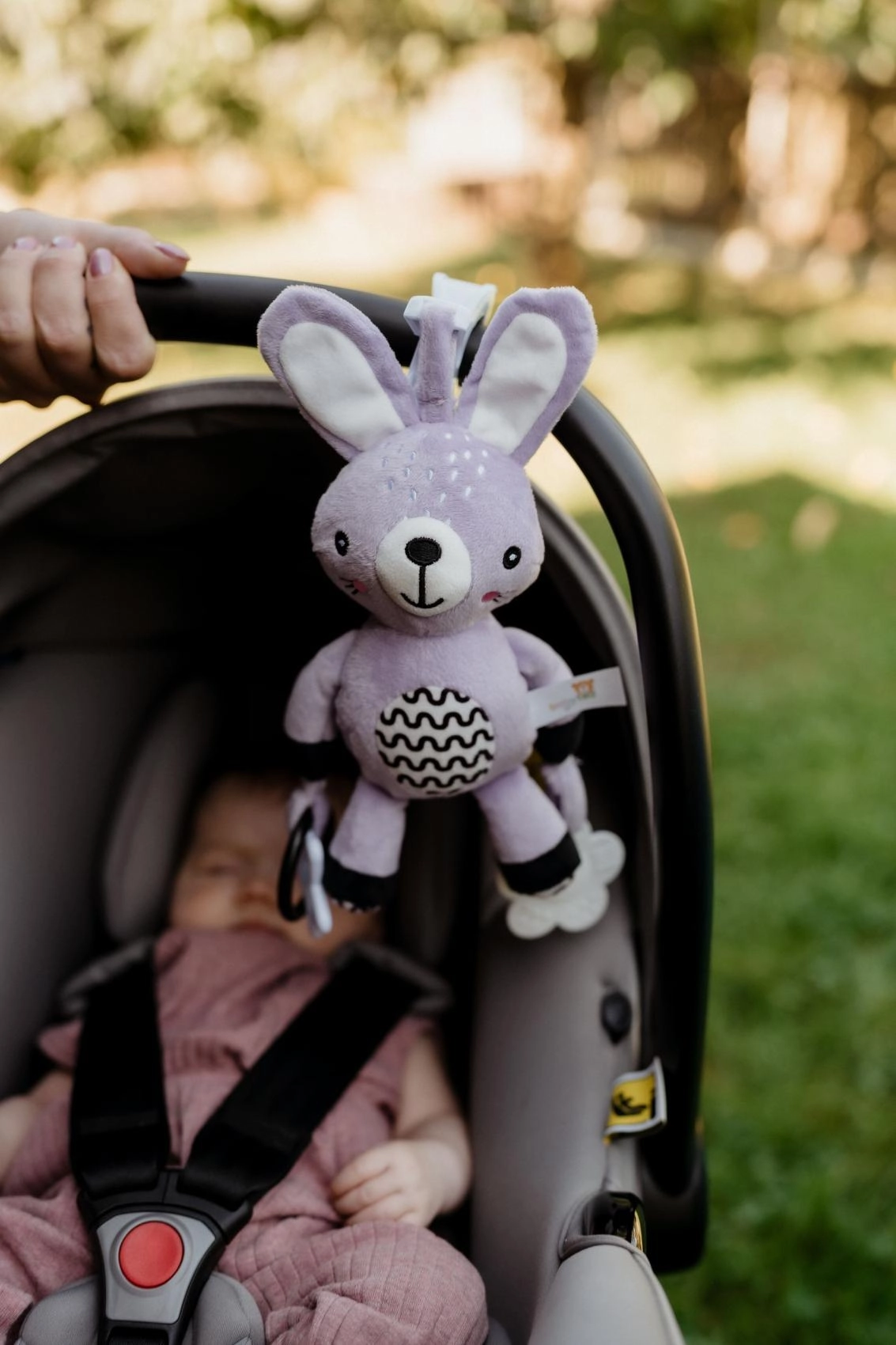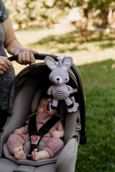 Mielas pliušinis triušiukas kūdikiams nuo 0 mėn. su patogiu segtuku vežimėliui, automobilinei kėdutei ar lovytei. Siūlo švelnų barškėjimą, minkštą medžiagą ir saugius kramtukus, skatinančius pojūčius ir smulkiąją motoriką. Sertifikuota Čekijoje – saugu patiems mažiausiems.