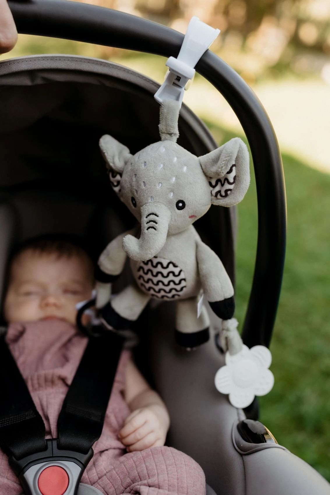 Per akimirką prisegsite drambliuką prie vežimėlio, lovytės ar automobilinės kėdutės rankenos – ideali pramoga kelionėse ir namuose.