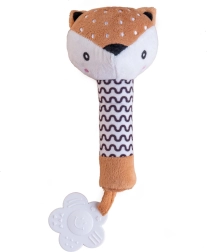 Mielas plišinis cypliukas ir kramtukas stirniuko formos – ideali pirmoji kūdikio žaisliukas nuo pat gimimo. Dėl minkšto korpuso jį lengva laikyti mažose rankytėse, suspaudus skleidžia švelnų cyptelėjimo garsą, lavinantį klausą, o gale yra gėlytės formos kramtukas, kuris malšina jautrias dantenas. Kontrastinis juodai baltas raštas skatina vizualinį suvokimą, o saugios, švelnios medžiagos tinka nuo 0 mėn.+.
