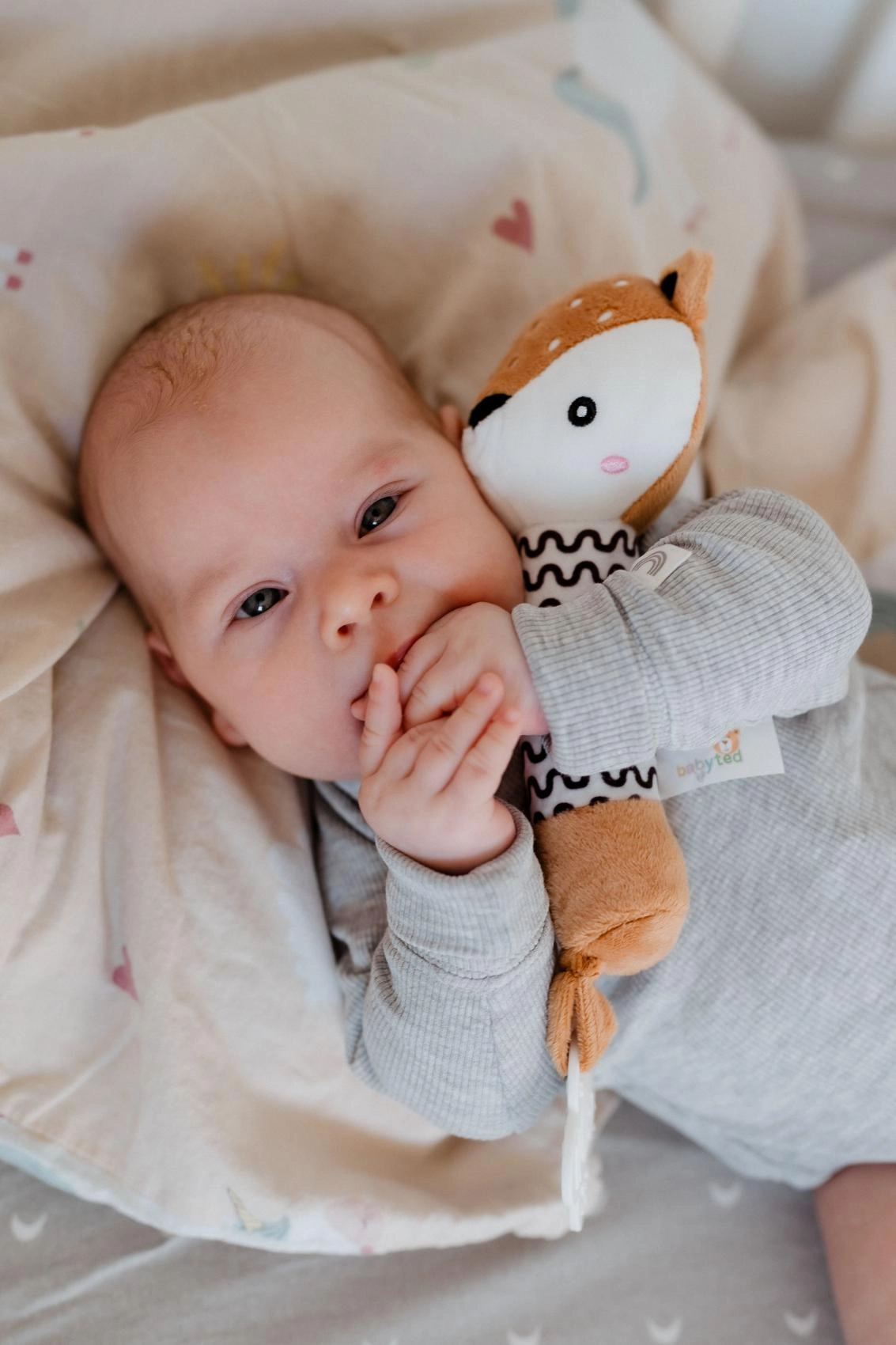 Ieškote pirmojo sensorinio žaislo naujagimiui? Šis stirniukas sujungia cypliuką, švelnų kramtuką ir pliušinį draugą viename. Ilgas, minkštas korpusas puikiai tinka mažoms delniukams ir skatina suėmimą, o suspaudus pasigirstantis cyptelėjimas švelniai stimuliuoja klausą ir natūralų smalsumą.