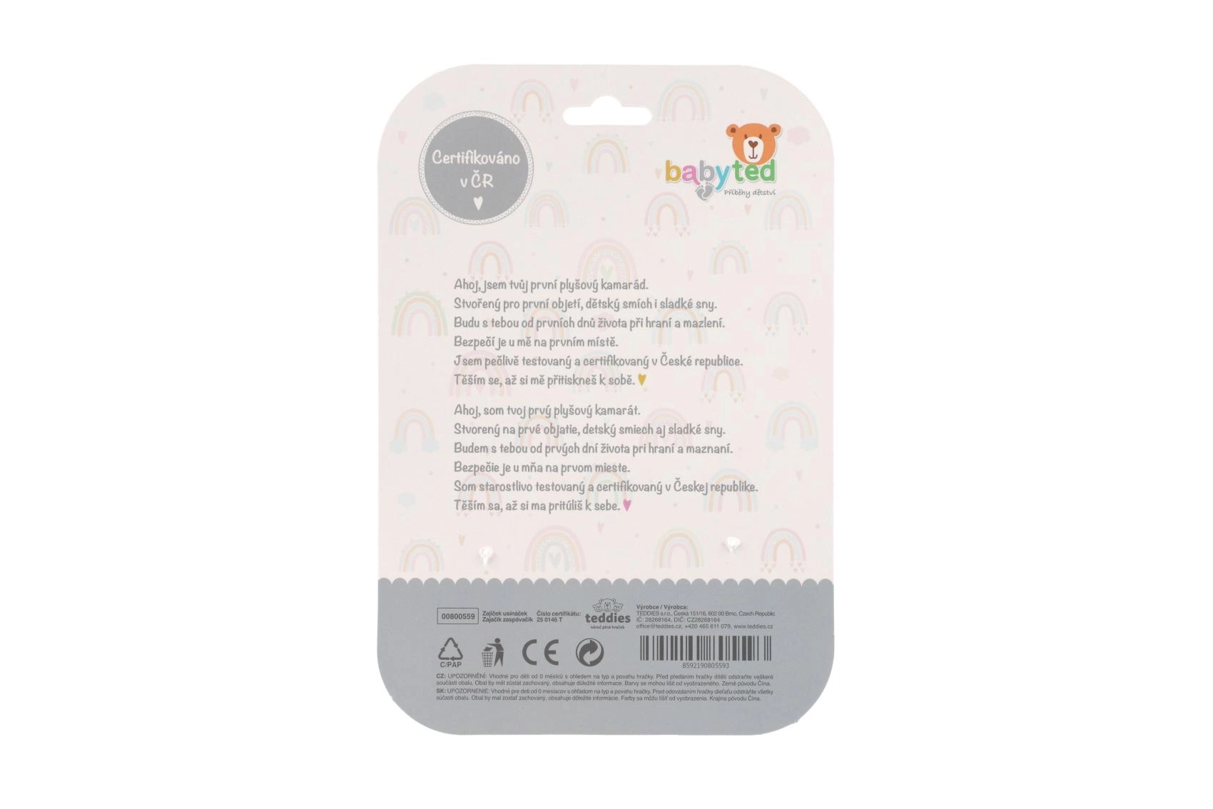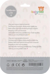 Viduje paslėptas švelnus barškutis klausai lavinti, viename kampe minkštas silikoninis kramtukas skausmingoms dantenoms palengvinti, o kampuose esantys mazgeliai lavina smulkiąją motoriką. Praktinis 25 × 25 cm dydis puikiai tinka lovytei, vežimėliui ir autokėdutei.