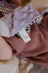 Ypač švelni minky medžiaga su iškiliomis taškelėmis suteikia kūdikiui malonią lytėjimo stimuliaciją ir saugumo jausmą užmiegant.