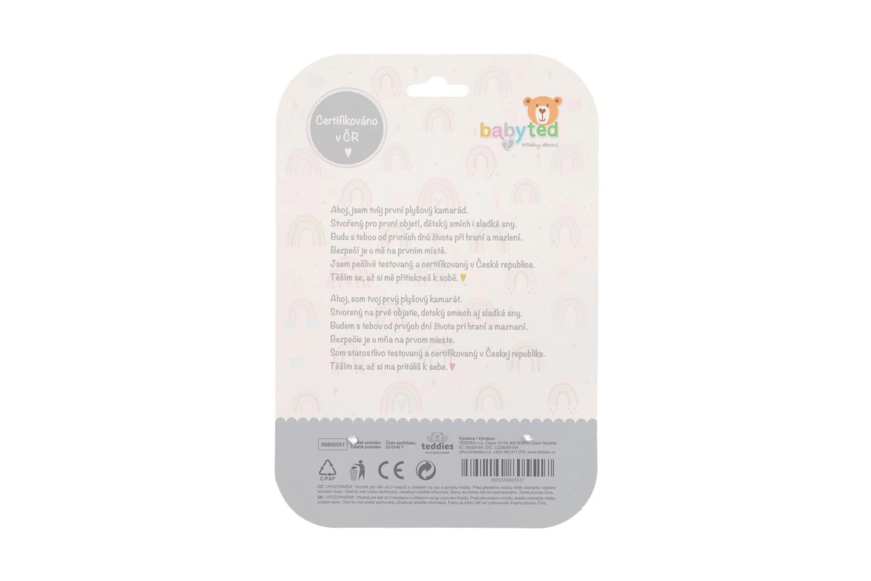 Apatinėje dalyje yra minkštas plastikinis kramtukas gėlytės formos, kuris malšina dantenas pirmiesiems dantukams dygstant. Kontrastinis juodai baltas raštas ant rankenėlės skatina vizualinį suvokimą, o saugios, švelnios medžiagos užtikrina malonų prisilietimą ir komfortą.