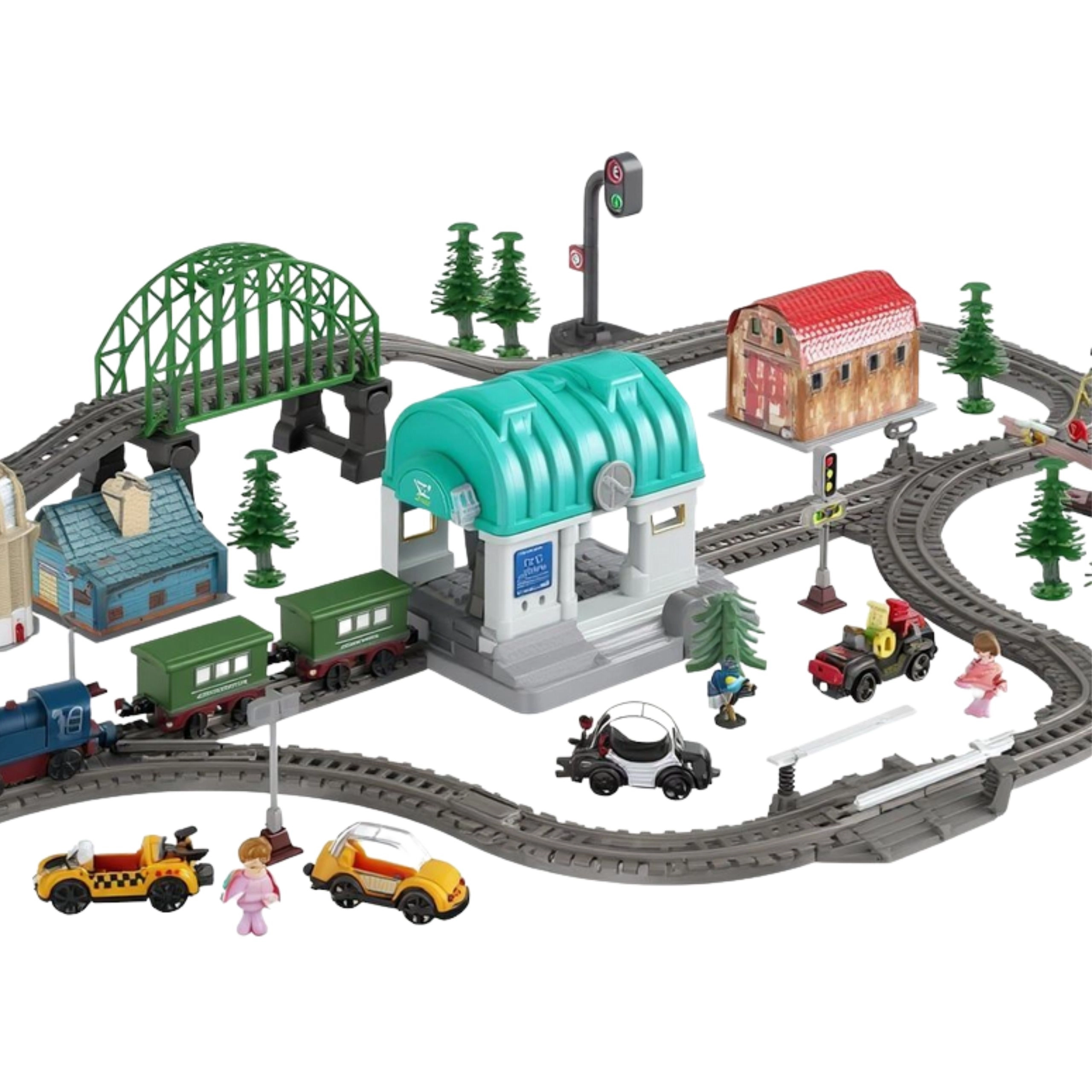 - Elektrinė traukinių trasa / žaidimų rinkinys su miesteliu
