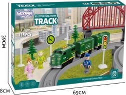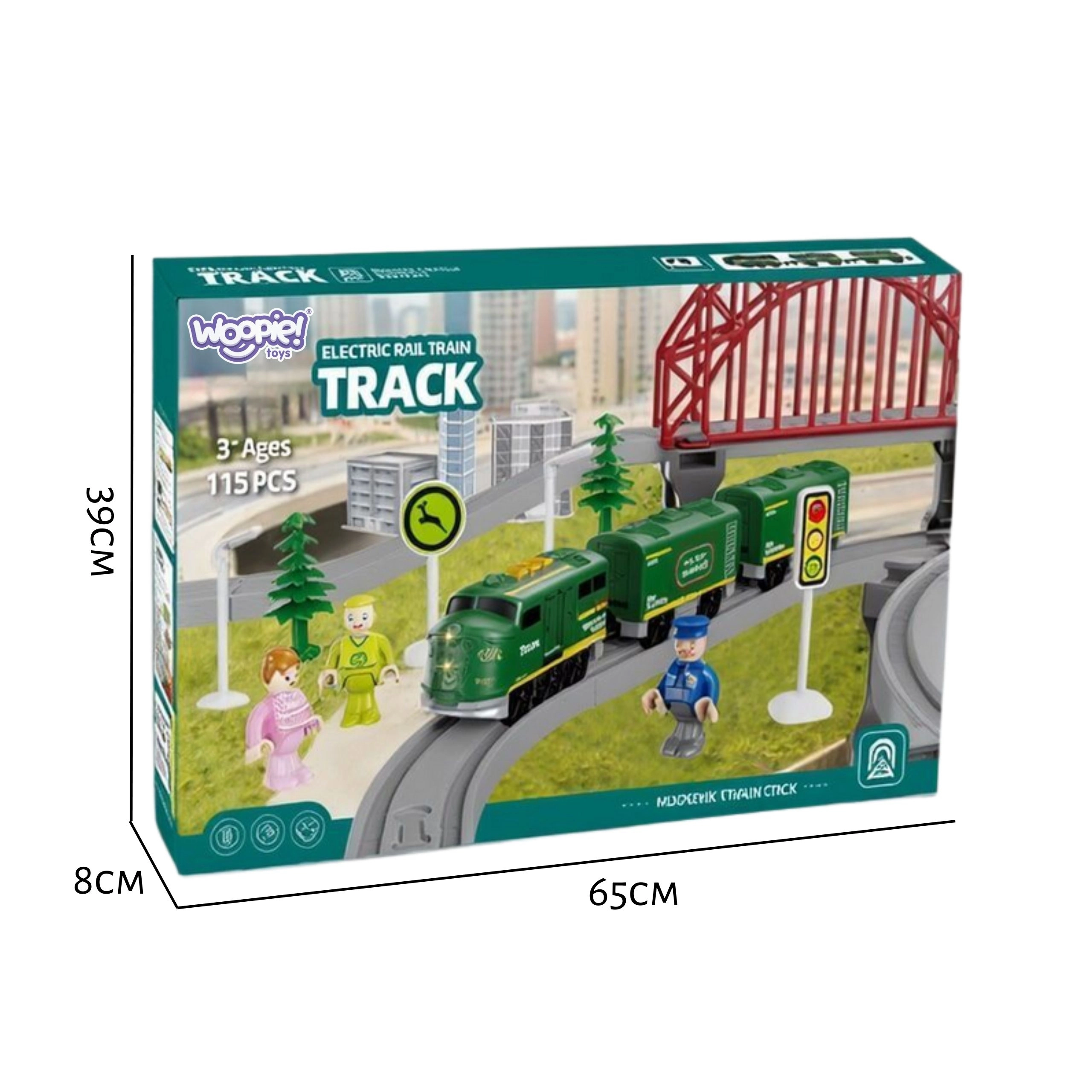 Didelė Woopie traukinių trasa į vaikų kambarį įneš realistišką geležinkelio atmosferą. Baterijomis maitinama lokomotyva sklandžiai važiuoja pirmyn ir atgal, lydima realių traukinio garsų ir šviečiančių žibintų. Dėl įvairių detalių galima kurti tiek paprastus ratus, tiek sudėtingus tinklus su tiltais, estakadomis ir bėgių perjungikliais.
