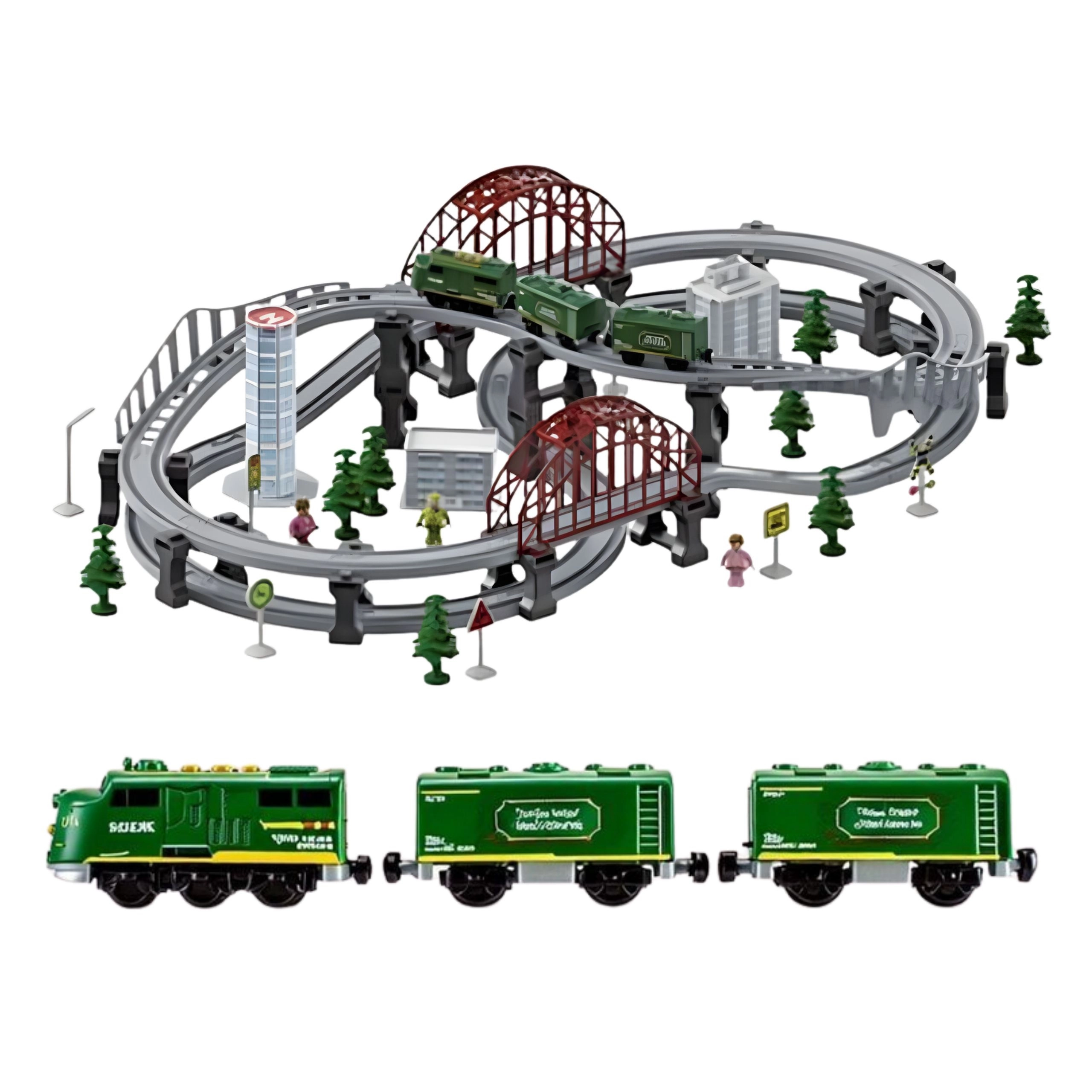 - Gausūs priedai – figūrėlės, ženklai, medžiai ir pastatai pilnai scenai sukurti.