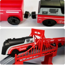 Du krovininiai vagonai greitai prisitvirtina vienas prie kito ir prie lokomotyvo dėl magnetų. Patvarios medžiagos atlaiko kasdienį žaidimą.