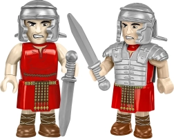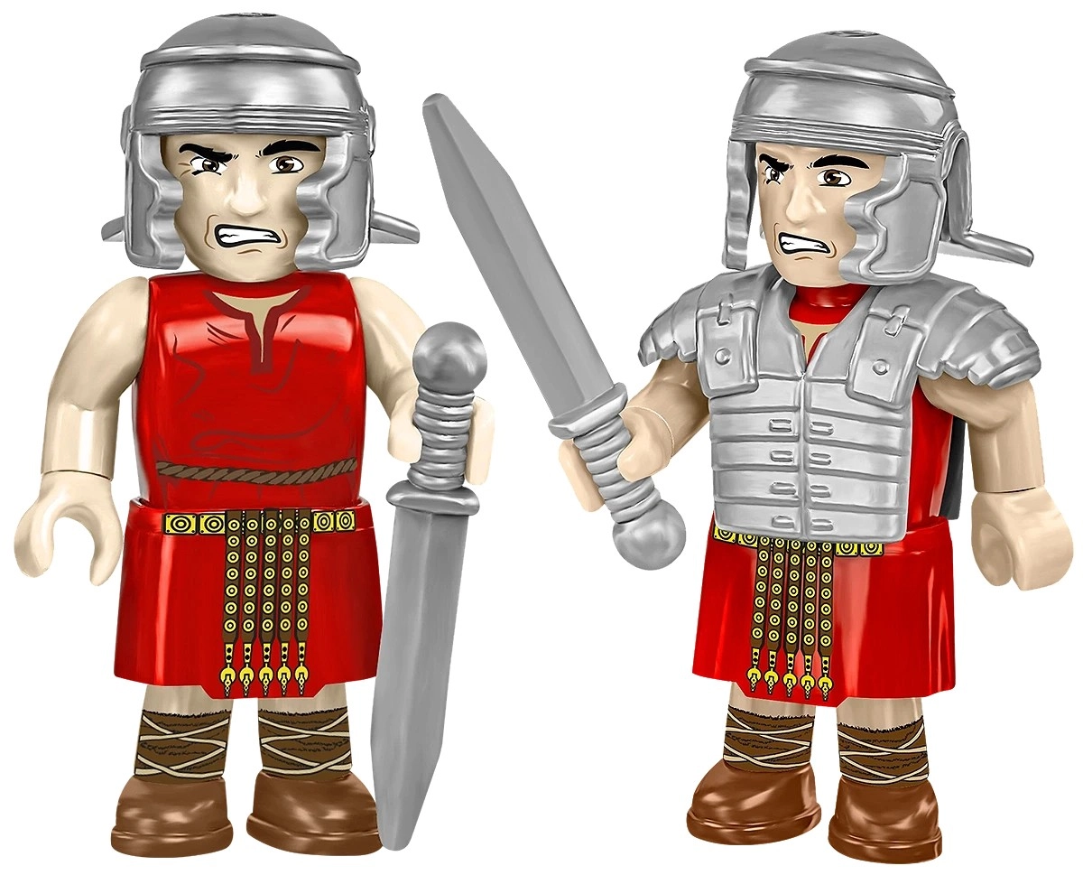 - 3 figūrėlės – romėnų legionierius su ginkluote (pilum, scutum, galea, gladius) ir du barbarų/keltiški kariai su kirviu, kardu ir skydu.