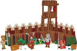 Pastatykite medinį bokštą su smailėmis palisadoje, laiptais ir kopėčiomis. Modulinė konstrukcija leidžia lengvai prijungti kitas stovyklos dalis ir kurti istorines scenas.