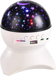 Šis elegantiškas baltas žvaigždžių projektorius pavers vaikų kambarį, miegamąjį ar svetainę poilsio zona. Dėl LED žvaigždžių ir mėnulio projekcijos jis sukuria raminančią aplinką užmigimui, skaitymui ar vakariniam poilsiui. Integruotas Bluetooth garsiakalbis leidžia leisti mėgstamas lopšines, ambientinę muziką ar audio pasakas tiesiai iš telefono, USB laikmenos ar microSD kortelės.