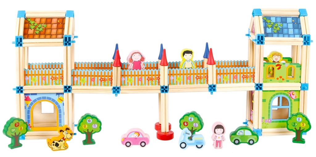 Šis kūrybinis konstruktorius sukurtas taip, kad „augtų“ kartu su jūsų vaikais. Tvirtos medinės detalės kartu su plastikinėmis jungtimis leidžia statyti stabilias ir įvairias konstrukcijas – nuo mažų namelių iki monumentalių pilių. Spalvų kontrastai ir skirtingos formos skatina loginį mąstymą ir erdvinę vaizduotę.
