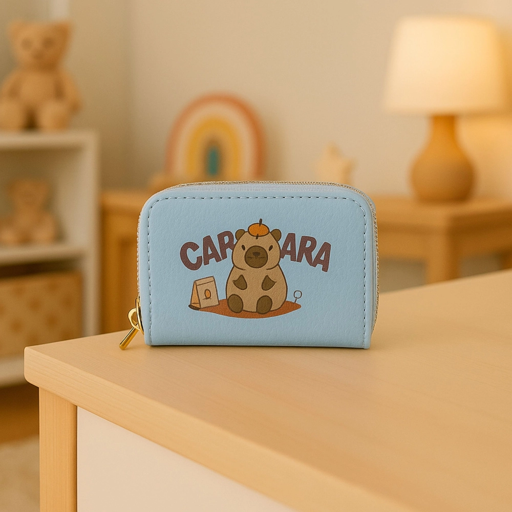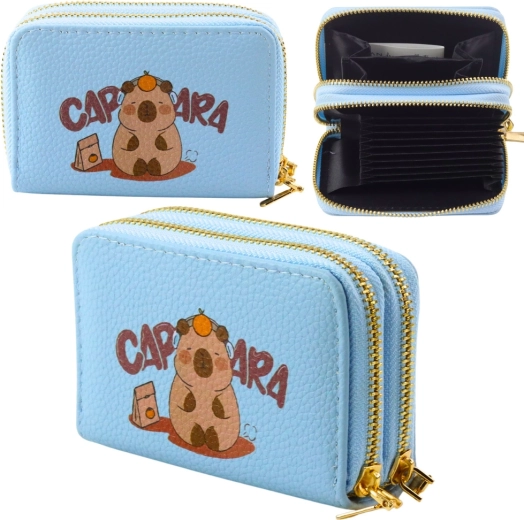 Ši šviesiai mėlyna piniginė derina žaismingą kapibaros dizainą ir praktišką organizavimą. Du auksiniai užtrauktukai atskiria laikymo vietas, todėl lengvai suskirstysite korteles, grynuosius, monetas ir kvitus. Vidinė akordeono konstrukcija suteikia greitą apžvalgą ir patogų pasiekiamumą.