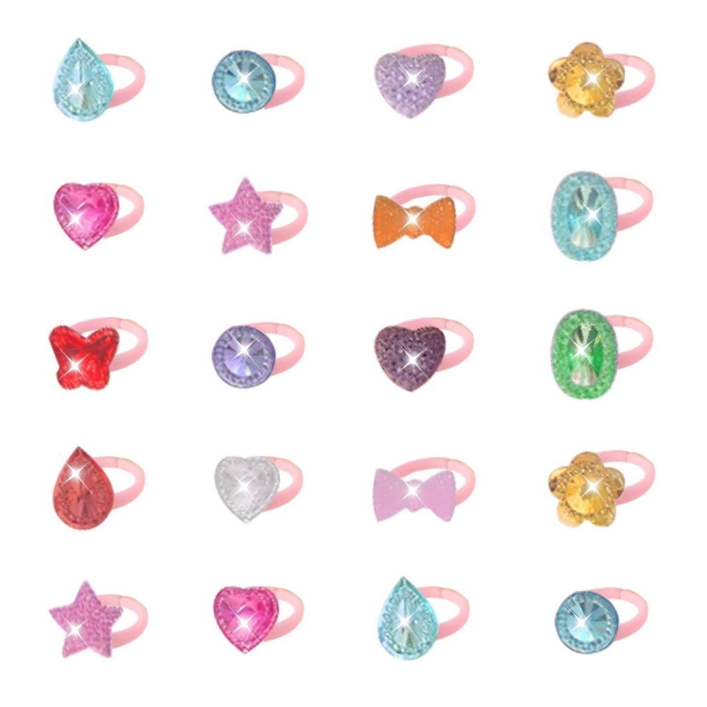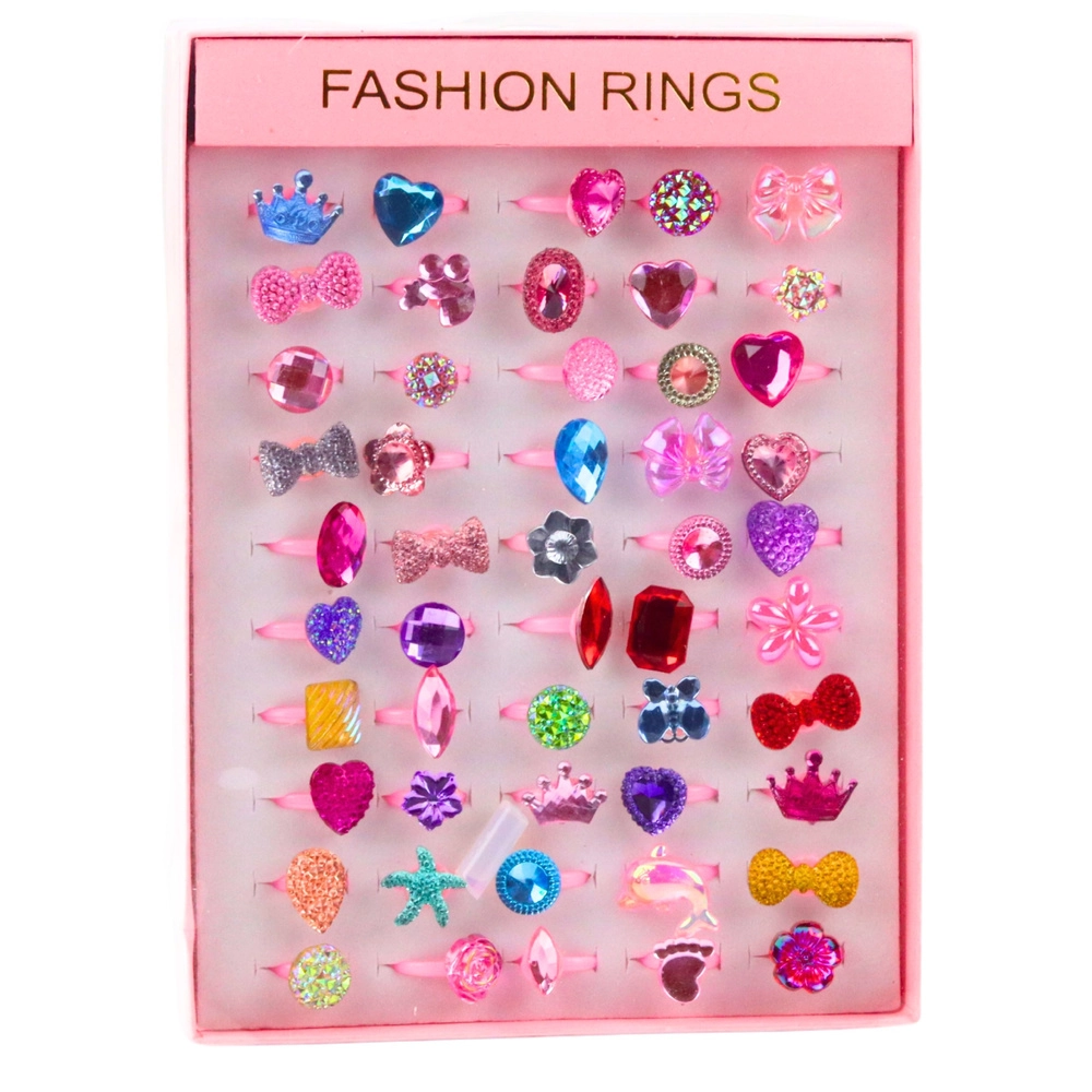 Vaizduotę žadinantis žaidimų rinkinys: 50 spalvotų žiedelių su širdelių, žvaigždučių, karūnėlių, kaspinėlių, gėlyčių ir didelių „krištoliukų“ motyvais pradžiugins kiekvieną mažą bižuterijos mylėtoją. Blizgūs briaunuoti akmenėliai gražiai atspindi šviesą ir suteikia kiekvienam kostiumui bei kasdieniams žaidimams išskirtinio spindesio.