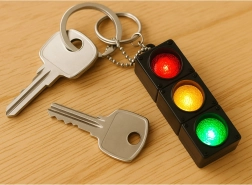 Mini šviesoforas raktams suteikia realistišką veikimo efektą: paspaudus mygtuką paeiliui įsižiebia žalia, geltona ir raudona, papildytos mirksėjimu. Dėl kompaktiškų matmenų puikiai tinka raktų ryšuliui, mokyklinei kuprinei ar penalei ir pradžiugins tiek vaikus, tiek suaugusiuosius.
