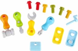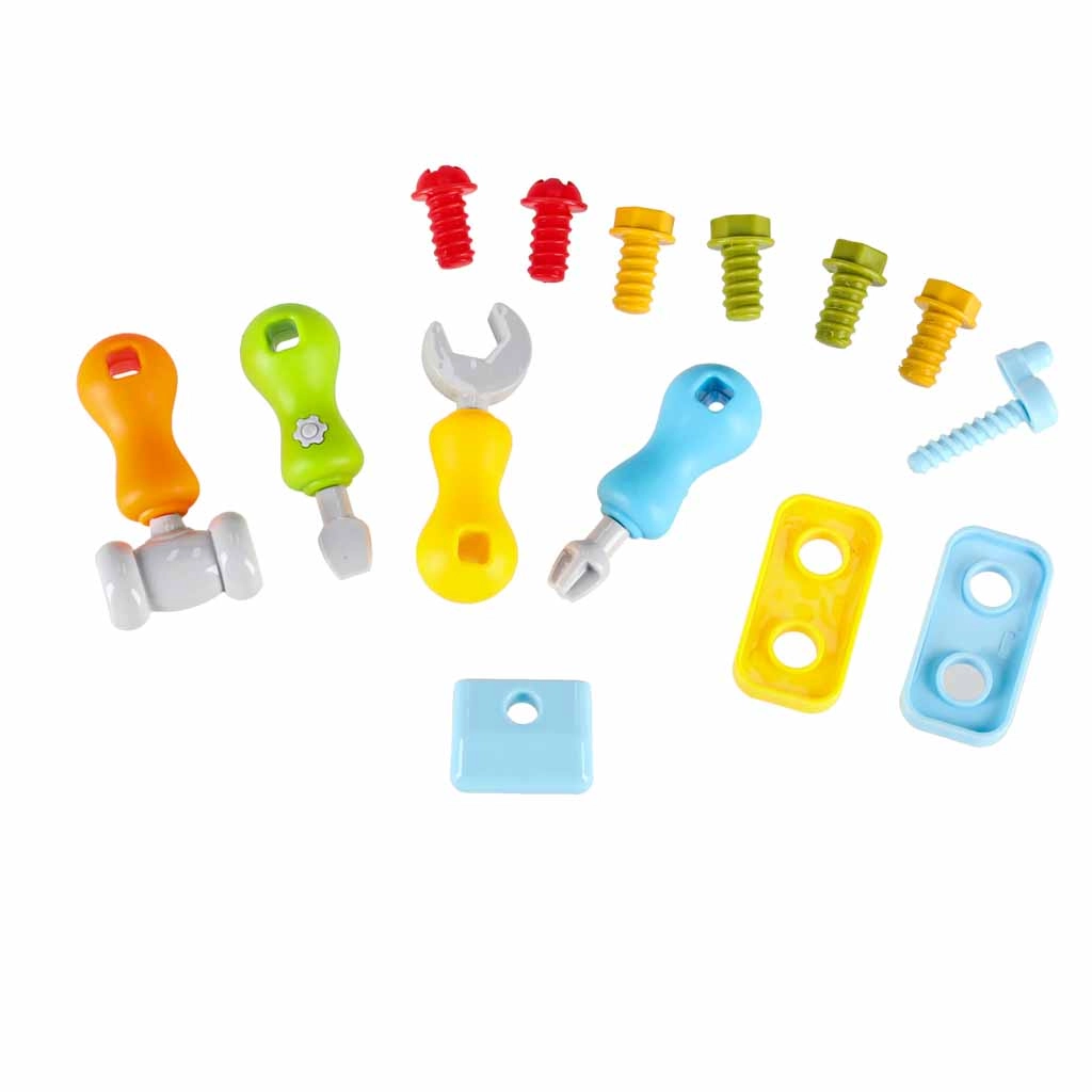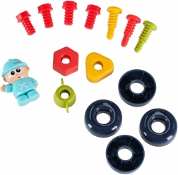 Rinkinyje yra varžtų, veržlių, pavarų, atsuktuvų, raktas ir plaktukas. Vaikai lavina tikslumą ir koordinaciją tvirtindami detales ir treniruodamiesi su formomis.