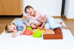 Jutiminė pusiausvyros trasa švelnių pastelinių spalvų yra ideali vaikams ir suaugusiesiems lavinant pusiausvyrą, stabilumą ir erdvinį suvokimą. Įvairūs paviršiai – nuo švelnių iškilimų iki ryškesnių masažinių taškų – suteikia gausią taktilinę pėdų stimuliaciją ir padeda taisyklingai laikysenai.