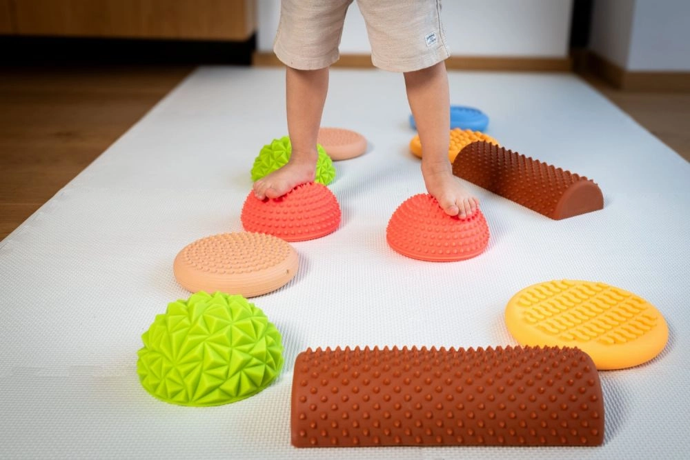 Kupolai, diskai ir pusiau voleliai su iškilimais ir raštais aktyvina pėdų receptorius, gerina propriocepciją ir padeda natūraliam pėdos riedėjimui.