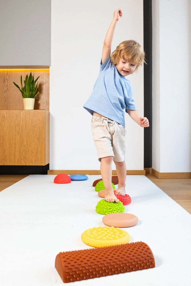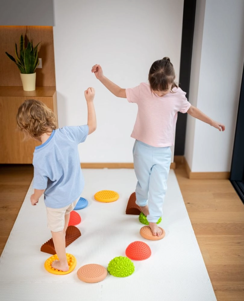 Rinkinyje yra kupolų, diskų ir pusiau volelių derinys, kuriuos galima laisvai išdėstyti tiesiomis linijomis ar žaidimų ratais. Dėl tvirtos, bet elastingos konstrukcijos ir neslystančios apdailos dalys yra saugios ant lygių grindų ir mankštos kilimėlių. Tinka namų mankštai, darželiams, mokykloms, kineziterapijai ir jutiminei integracijai.