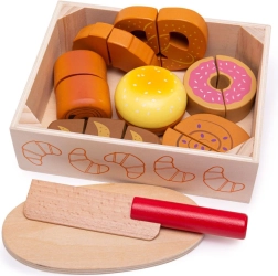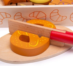 Pristatome jums medinį pjaustymo kepinių rinkinį, sukurtą visiems vaikams, norintiems atrasti virtuvės pasaulio žavesį. Šis spalvingas rinkinys apima įvairių formų kepinius, tokius kaip kruasanai, spurgos ir duona, kuriuos galima „pjaustyti“ pridėtu mediniu peiliu. Žaislai pagaminti iš kokybiškos medienos ir sujungti lipnia juostele (velkro), todėl žaidimas tampa interaktyvus ir realistiškas.