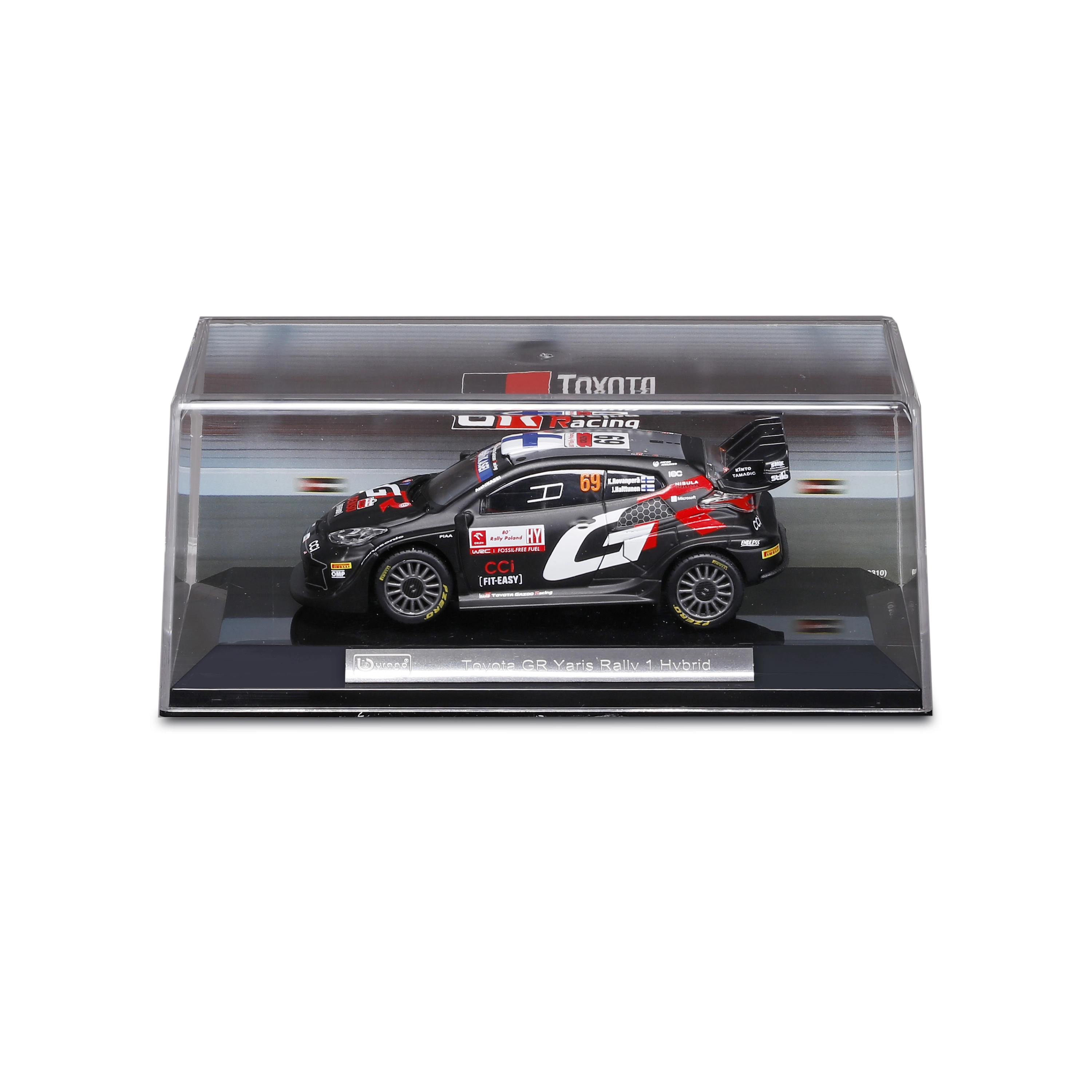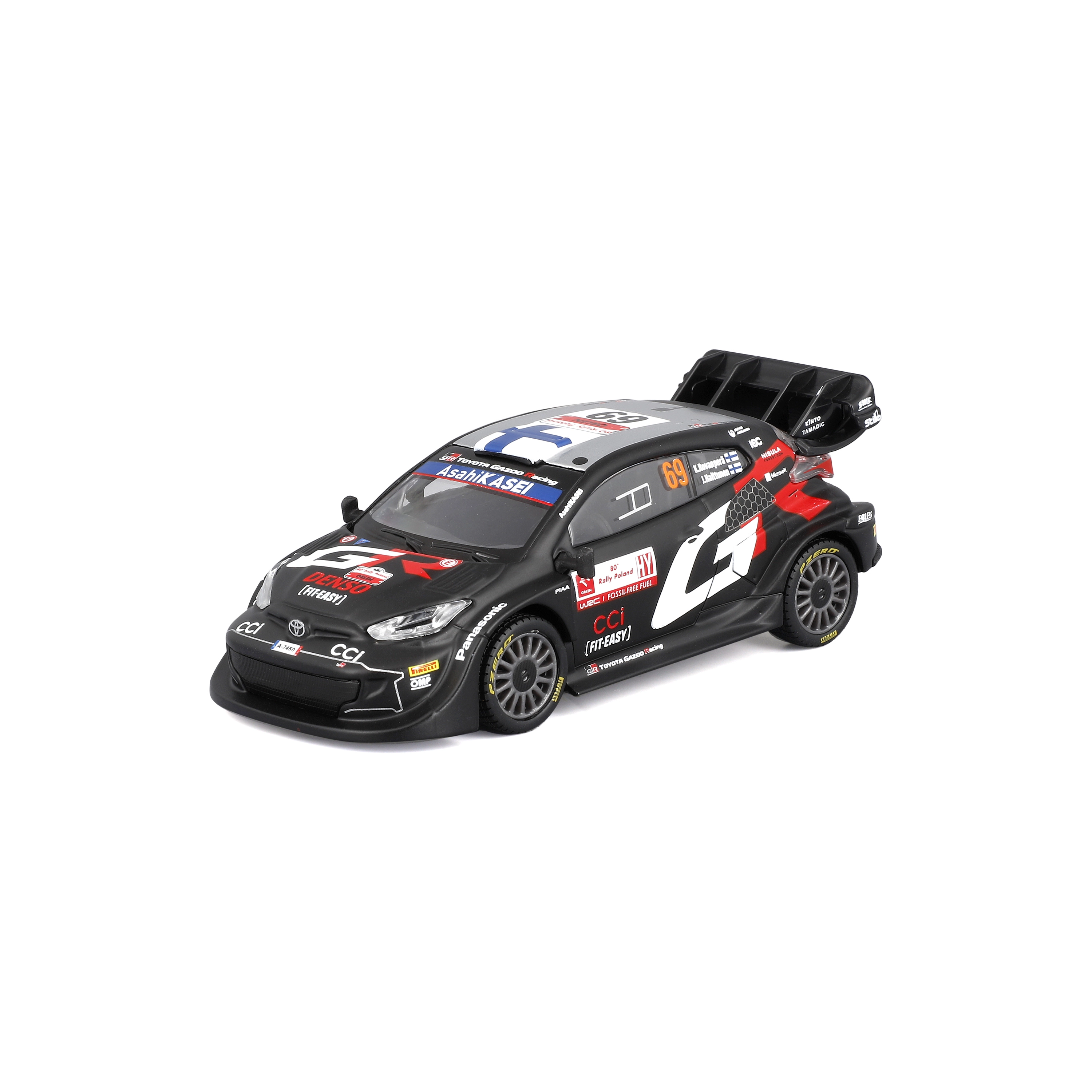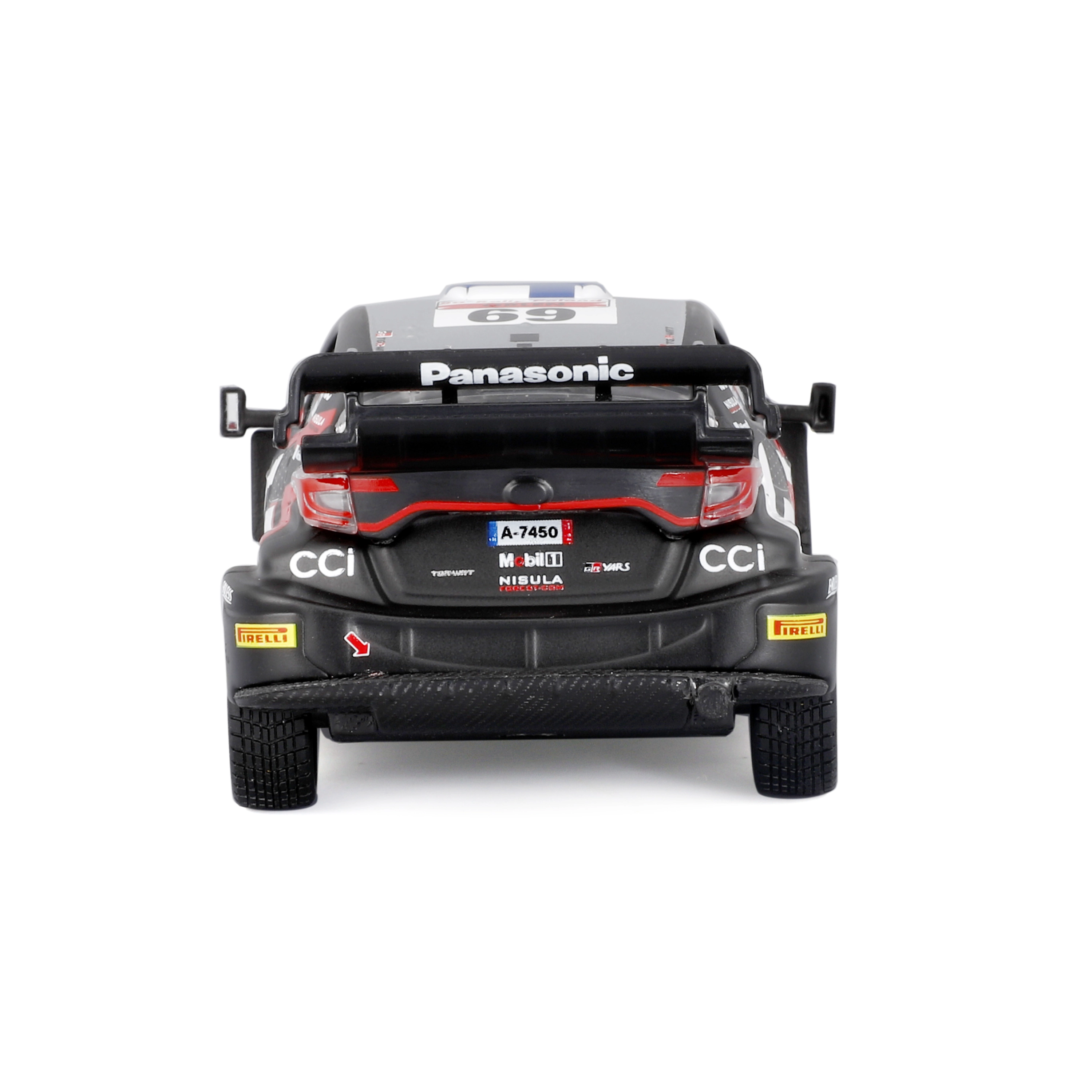 Detalūs rėmėjų spaudai, tikslios spalvos ir starto numeris 69 pabrėžia realią GR Yaris Rally1 Hybrid išvaizdą.