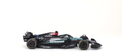 Dėl realistiškų rėmėjų užrašų, juodos „stealth“ dažymo schemos su turkio akcentais ir laisvai besisukančių ratų modelis puikiai tinka vitrinai ir kaip dovana F1 bei George’o Russello gerbėjams. Kompaktiškas 1:43 mastelis palengvina eksponavimą ir visos komandos serijos rinkimą.