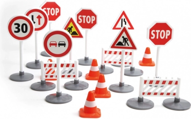 Kiekvieno ženklo aukštis yra apie 16 cm, o jis pagamintas iš kokybiško, patvaraus plastiko, kuris atlaiko kasdienį naudojimą namuose ar darželyje. Rinkinys tinka papildyti autodromus, žaidimų kilimėlius ir teminius statybos projektus.