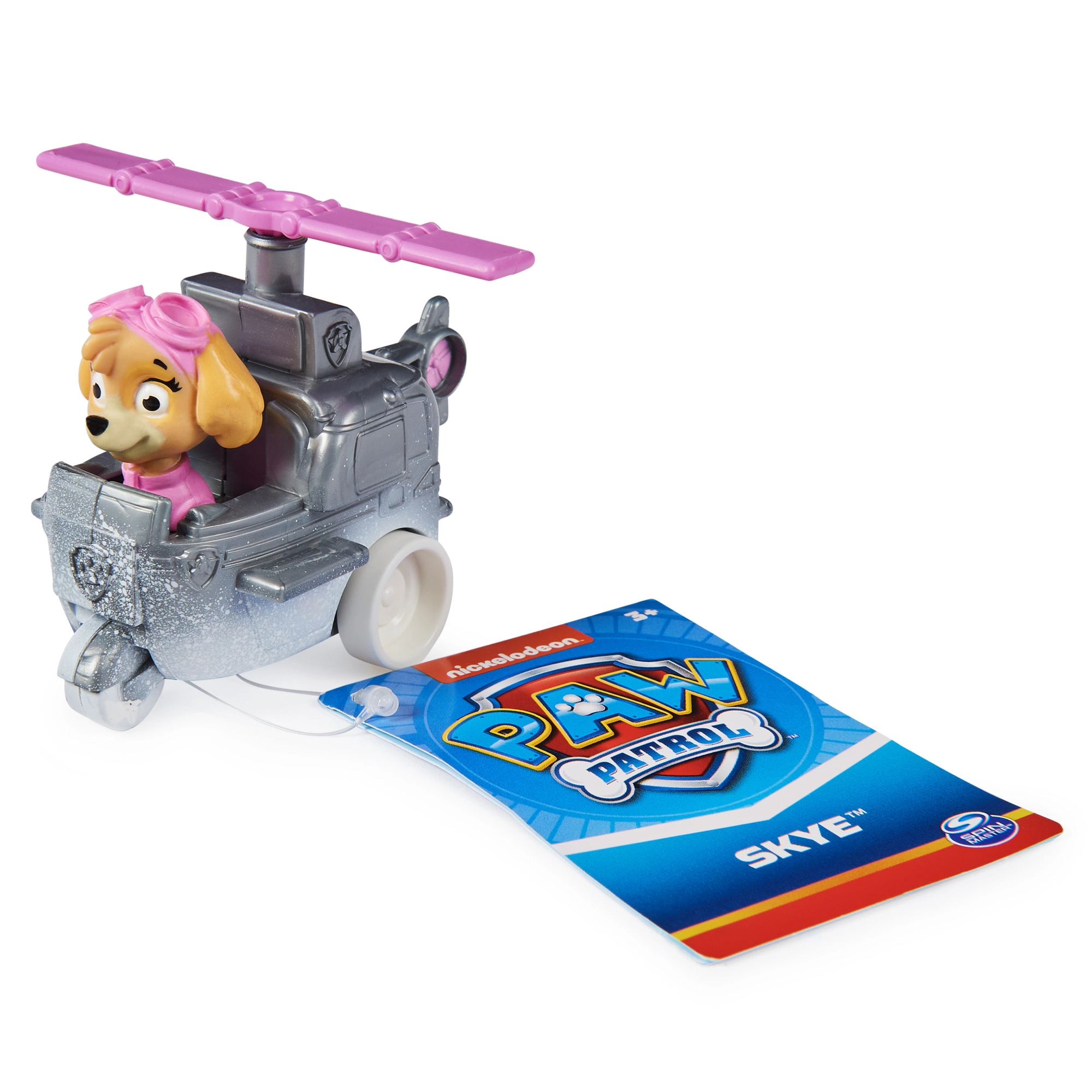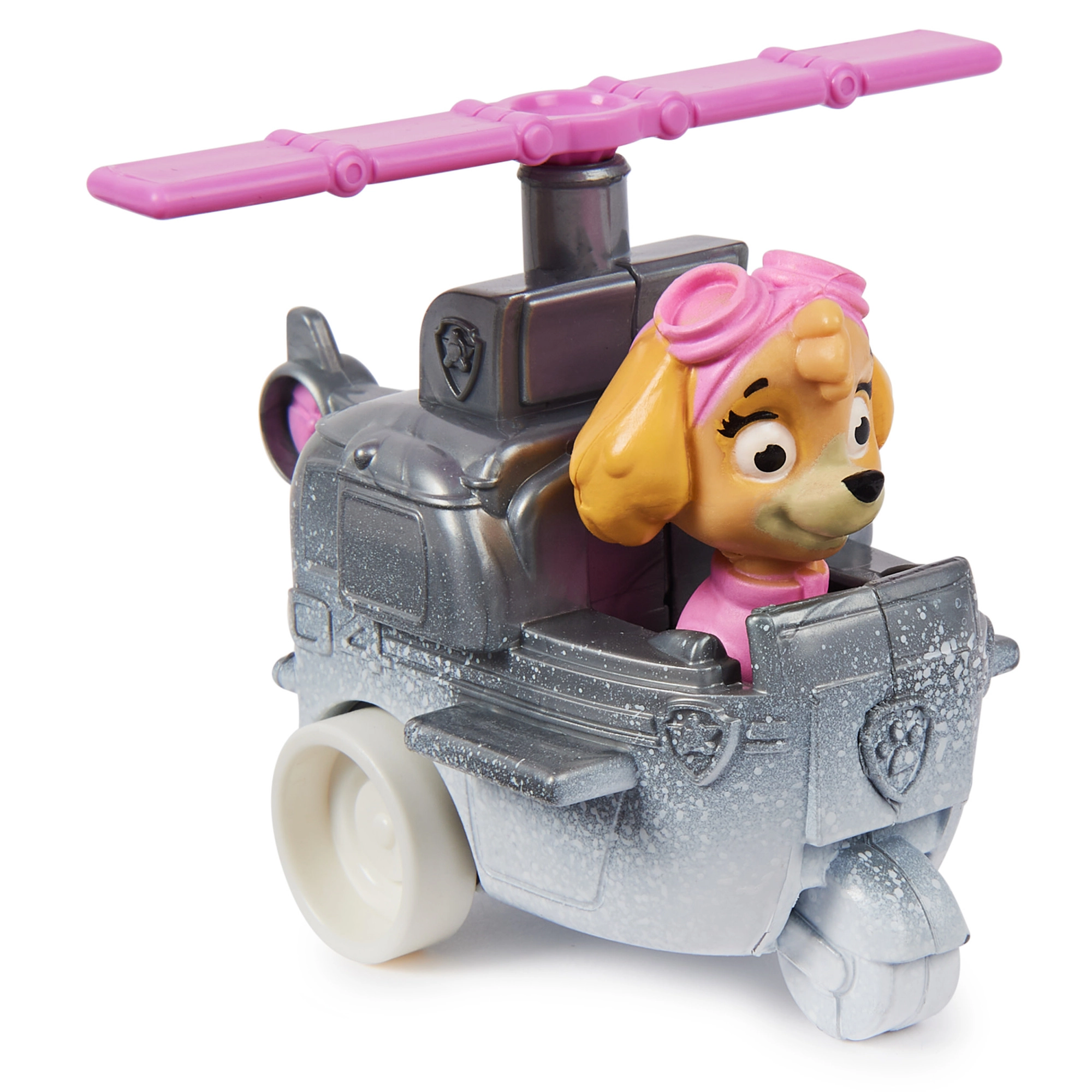 Leiskitės į gelbėjimo misiją su Skye jos ikoniškame sidabriniame–rožiniame sniego sraigtasparnyje. Detalės su „sniego“ efektu suteikia žiemišką atmosferą ir žadina vaikų fantaziją. Dėl patvarios konstrukcijos ir 8 cm dydžio jis puikiai tinka kelionėms ir žaidimams namuose.