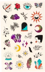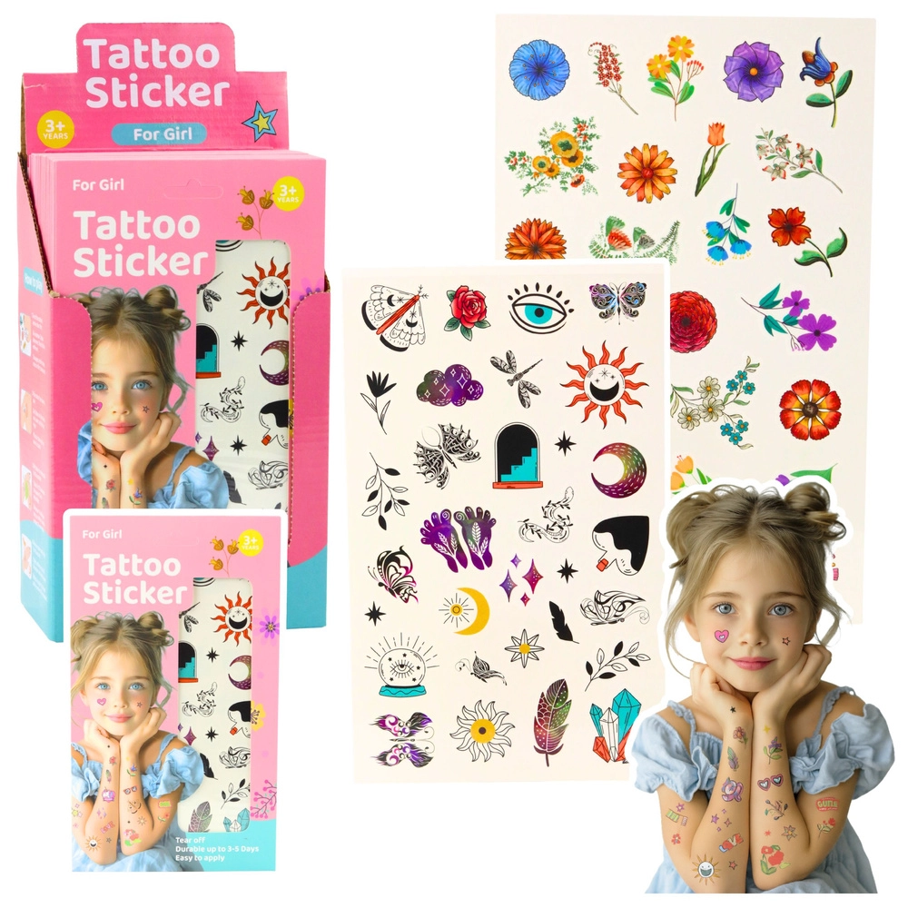 Suteikite vaikams kūrybiškos pramogos su ryškiaspalviu, fantaziją skatinančiu laikinių tatuiruočių rinkiniu. Užklijavimas greitas ir paprastas: uždėkite pasirinktą motyvą ant odos, sudrėkinkite apie 20 sekundžių ir nuimkite popierių – rezultatas akimirksniu matomas ir įspūdingas. Tatuiruotės paprastai laikosi 3–5 dienas, o prireikus jas bet kada galima lengvai nuplauti muilu ir šiltu vandeniu.